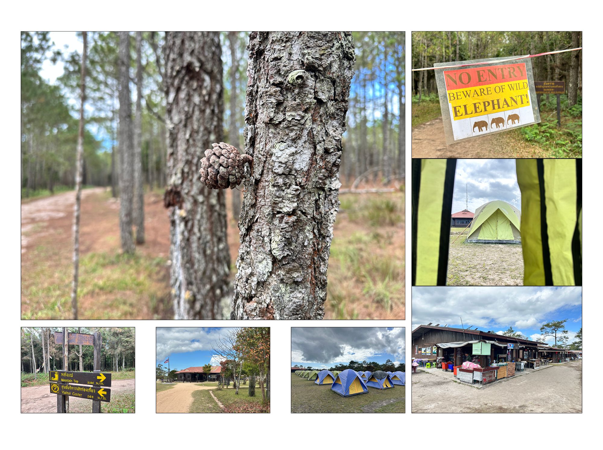 สุดทางแยกที่จะไป "ผานกแอ่น" ถูกตรึงไปด้วยเทปขาวแดงที่บอกเราว่า "ห้ามผ่านไปทางนี้" เนื่องจากเป็นเขตหากินของช้างป่าที่อาจทำอันตรายแก่ผู้มาเยือนแบบเราได้ ดังนั้นต้องเดินต่อไปยังลานกางเต็นท์เพื่อเตรียมตัวกันก่อน