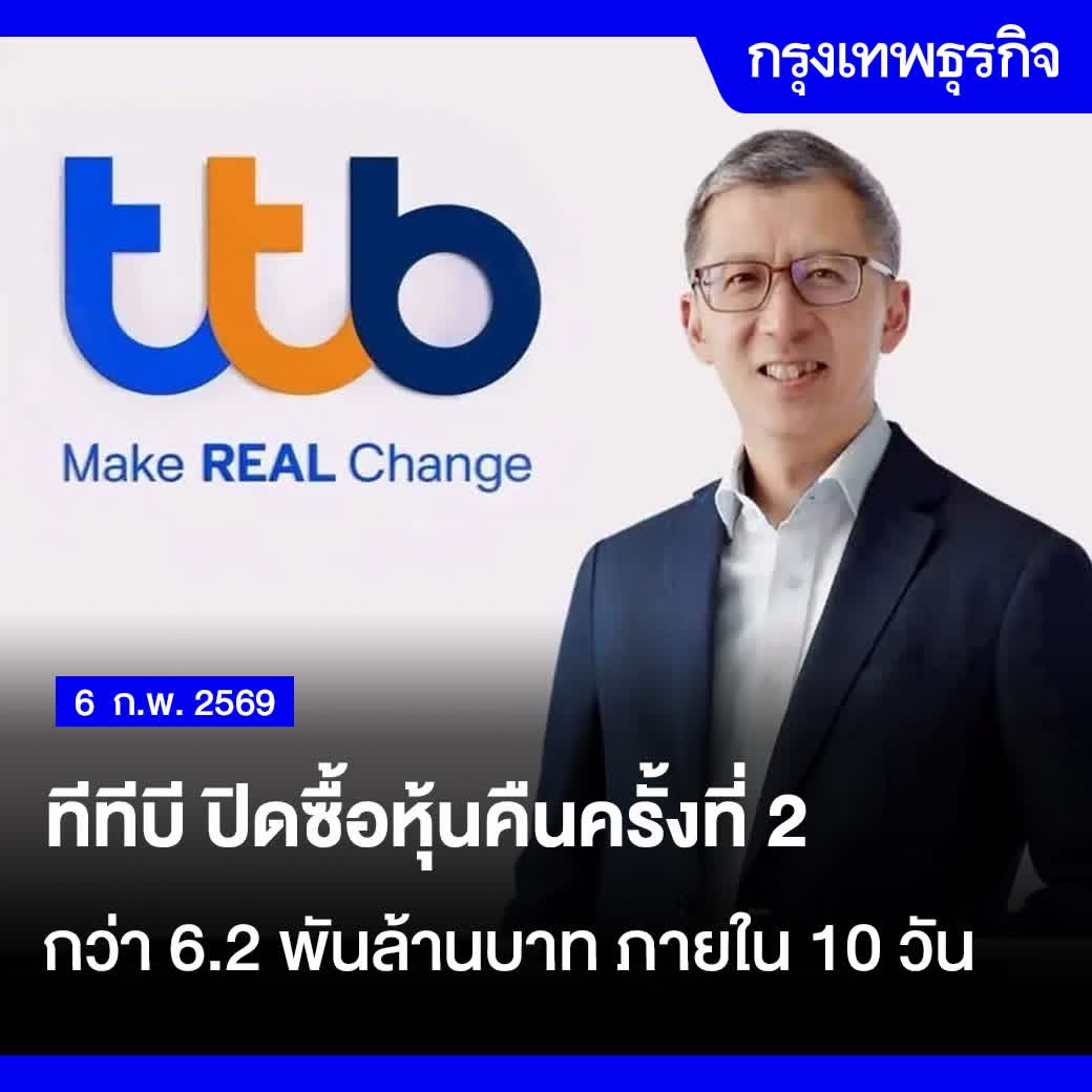 ก่อนหน้านี้ 'ทีทีบี'ได้ประกาศปรับแผนการซื้อหุ้นคืนครั้งที่ 2 ให้เร็วขึ้นกว่ากำหนดเดิม พร้อมเพิ่มวงเงินซื้อคืนขึ้นเป็น 8,900 ล้านบาท โดยใช้วิธีการเสนอซื้อเป็นการทั่วไป (General Offer) ในราคา 2.03 บาทต่อหุ้น ตั้งแต่วันที่ 22 มกราคม 2569 ถึง 4 กุมภาพันธ์ 2569 นั้น