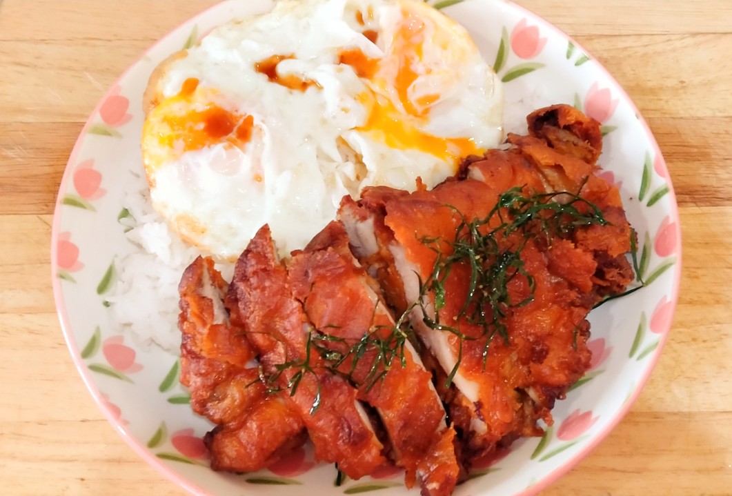 ข้าวไก่ทอดพริกแกง+ไข่ดาว 🍛🍗🍳