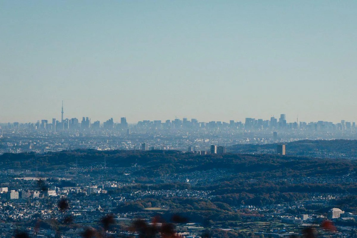 ภาพนี้คือ วิวเมืองกรุงโตเกียว มองจากภูเขาด้านตะวันตกของโตเกียว ( เขาทาคาโอะ )