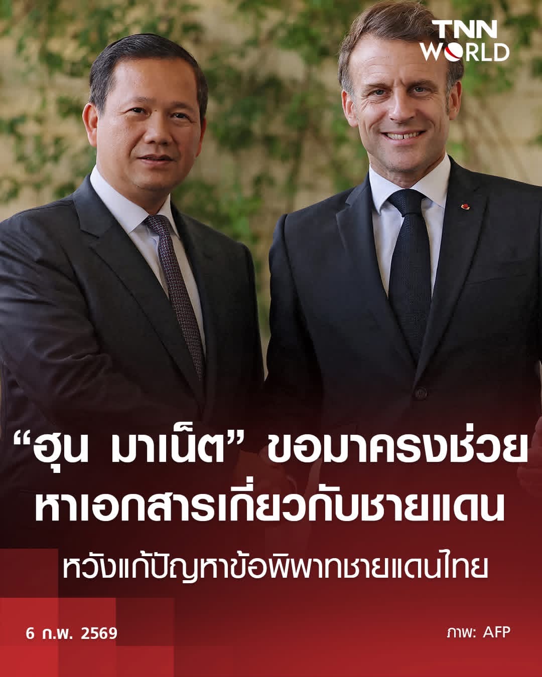 ยัง ยังไม่จบ ฮุน มาเน็ต ขอให้ มาครงช่วย หาเอกสารเกี่ยวข้องกันชายแดน หวังยุติข้อพิพาทชายแดนไทย