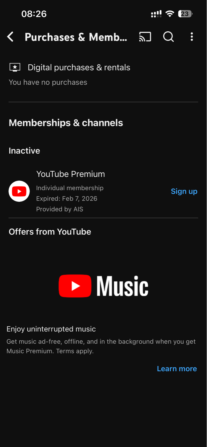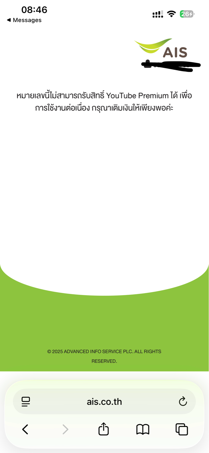 Ais Youtube premium หักแล้วแต่ใช้งานไม่ได้