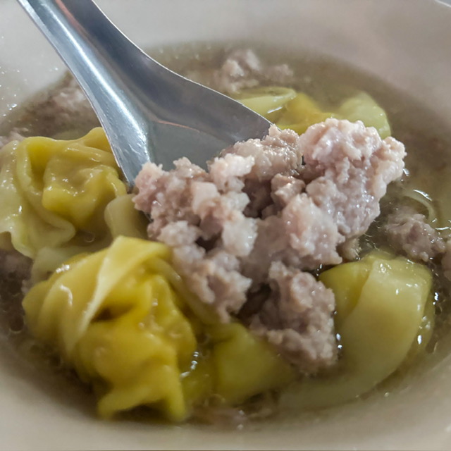 ผัดไทของเค้าจะไม่มีเครื่องอะไรเลย เนื้อสัตว์ใดๆ ไม่มีเลย จะเป็นเส้น ซอสปรุงรส ถั่วงอก ต้นหอม ผมสั่งไม่ใส่ผัก เลยไม่รู้จริงๆ จะมีกุ้ยช่ายใส่ไหม แต่เหมือนจะไม่มี คือผัดไทของที่นี่คือแบบดั้งเดิมแท้ๆ ของเค้าเอง และในคห.ส่วนตัวของผม เอง คือ ถ้ากินแล้ว ก้อาจจะเฉยๆ แต่ถ้ากินเสร็จแล้ว พอขึ้นรถกลับบ้าน หรือได้ไปกินผัดไทที่ไหนต่อ สิ่งนึงคือคุณจะนึกถึงผัดไท ร้านนี้ขึ้นมาทันทีเลย คือ อาจจะไม่ใช่เครื่องเคราที่หรูหรา หรือรสชาติที่สุดยอดลงตัว ผมก็นึกไม่ออก แต่ผมไปกินที่ไหน แม้แต่ที่ สุโขทัย ผมก็ยังอดนึกถึงผัดไท ปากบางร้านนี้ไม่ได้เลยจริงๆ เส้นเค้าจะเป็นกลิ่นหืนเล็กๆ และเส้นหนุบมาก แต่ไม่แธ และพอผัดแล้วกินหมดแล้ว คือ มันพอดี มันกำลังดี บอกไม่ถูกจริงๆ ต้องลอง