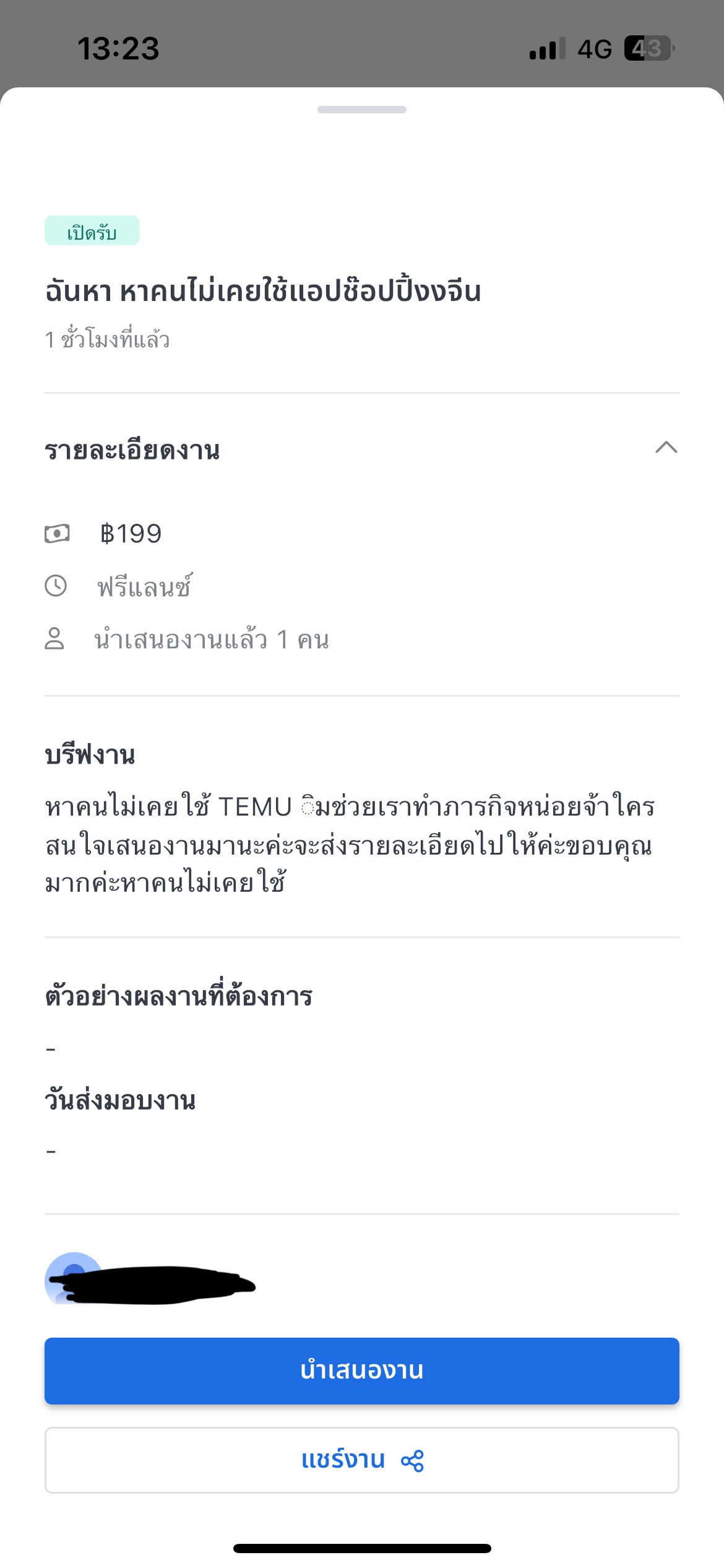 รับงาน โหลดแอป Temu ใน Fastwork