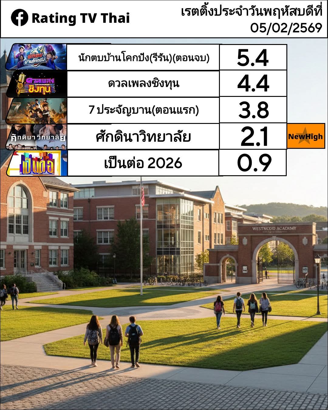 เรตติ้งประจำวันที่ 5 ก.พ. 69