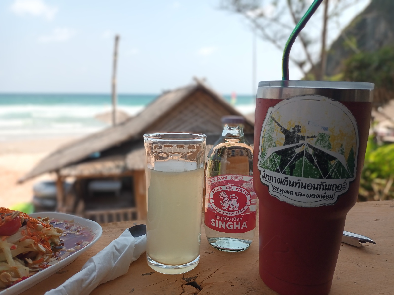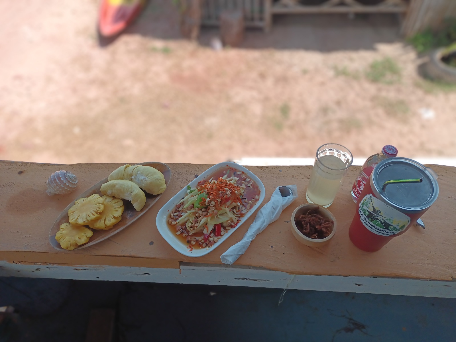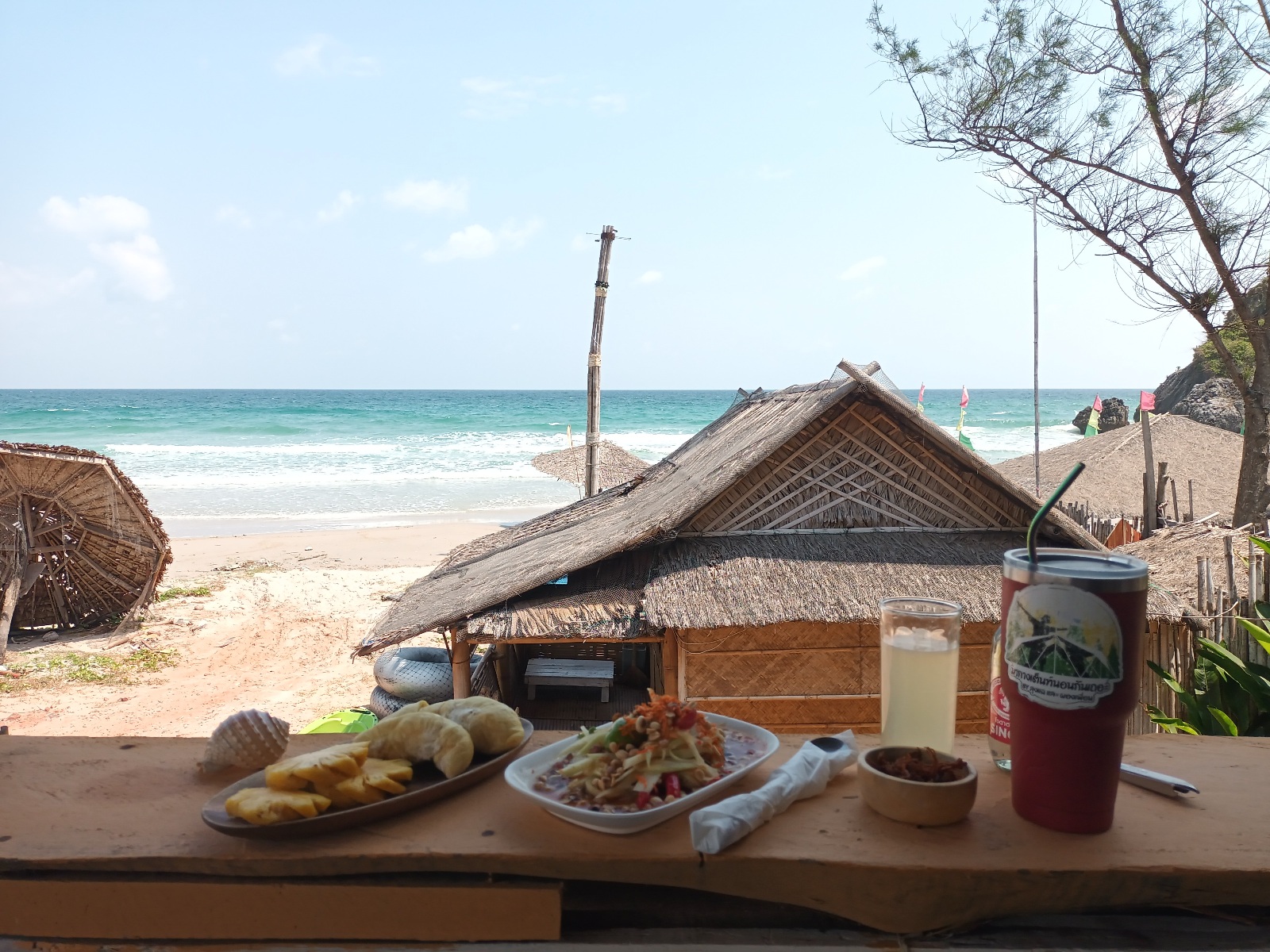 ใช้เวลาราวชม.ก็เรียบร้อย สั่งส้มตำของร้านไว้ครับ ขี้เกียจทำ ถ่ายรูปทำทรงด้านหน้าได้ไม่นาน ลมพัดแรง ยกกลับมาเต็นท์นั่งกินสบายๆ ดีกว่า ทุเรียนอร่อยดีครับ