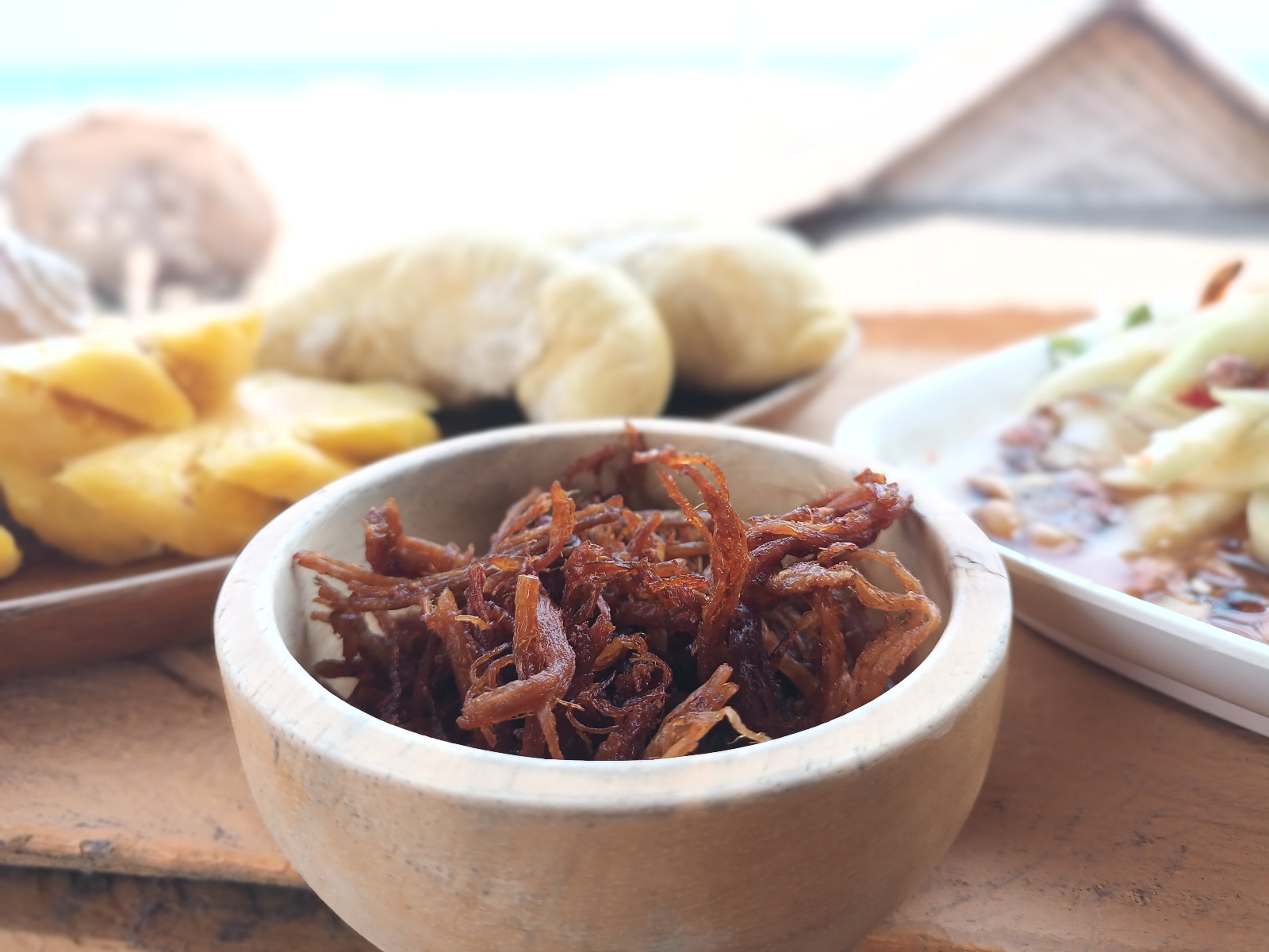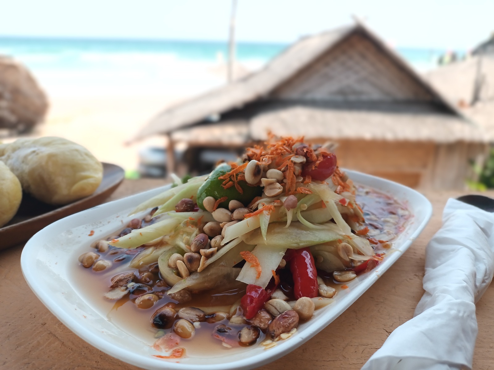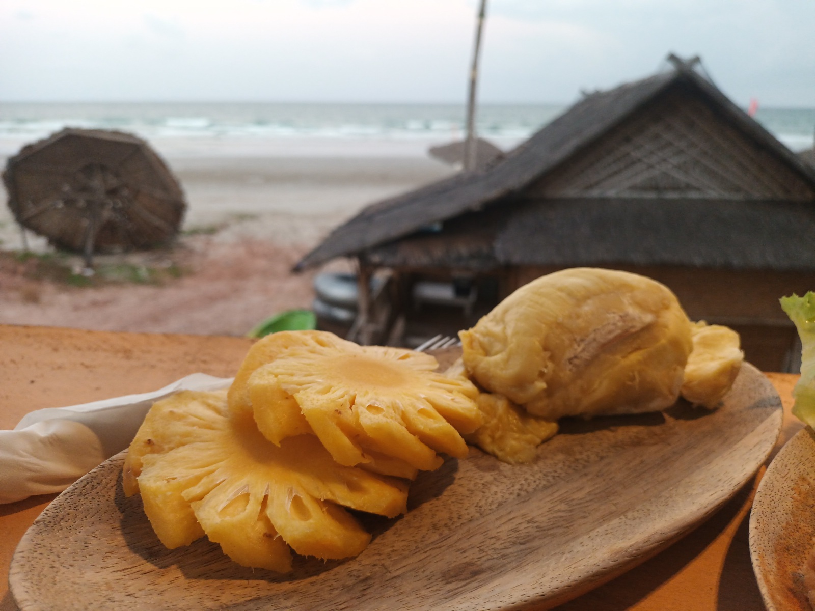 ใช้เวลาราวชม.ก็เรียบร้อย สั่งส้มตำของร้านไว้ครับ ขี้เกียจทำ ถ่ายรูปทำทรงด้านหน้าได้ไม่นาน ลมพัดแรง ยกกลับมาเต็นท์นั่งกินสบายๆ ดีกว่า ทุเรียนอร่อยดีครับ