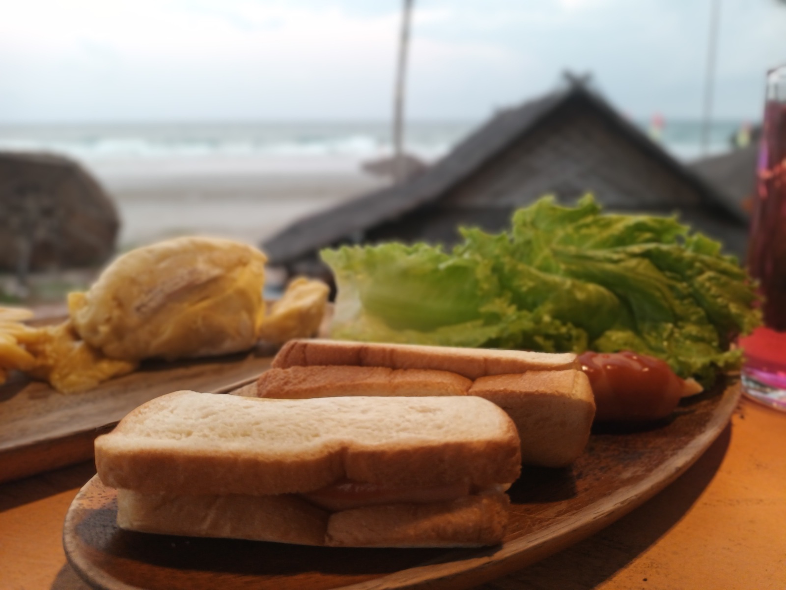 มาถึง 11 โมงนิดๆ จอดรถแล้วทักทายเจ้าของลาน วันนี้มรสุมเข้า คลื่นลมแรงมาก เสียงคลื่นกระทบชายหาดดังซู่ซ่าตลอด ยอดคลื่นฟองสีขาวเป็นระยะๆ และลมแรง