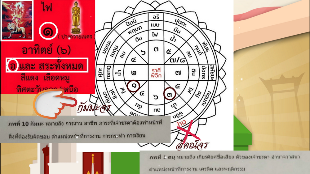 เมื่อเราได้ทราบแล้วว่า ลัคณาจรดวงเมื่อนั้นปัจจุบันนั้นกำลังโคจรอยู่ที่ราศีพิจิก ให้คุณสังเกตที่ราศีพิจิกดาวอังคาร(๓)นั้น