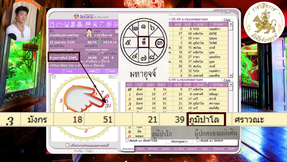 ก็กำลังโคจรเป็นมหาอุจจ์ในฤกษ์ภูมิปาโล(ฤกษ์แห่งเจ้าพระยา หรือผู้ครองแผ่นดิน) จะมีผู้ขึ้นเป็นใหญ่ก็คือนายกรัฐมนตรีหรือเหล่ารัฐมนตรี