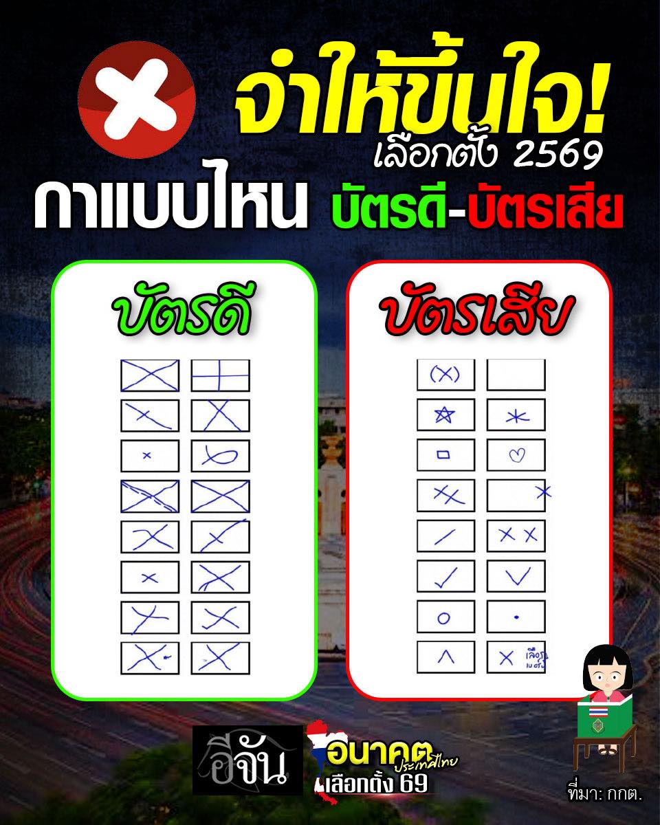 รู้หรือไม่? เลือกตั้ง พรุ่งนี้ กากบาท (x) แบบไหน เป็นบัตรดี บัตรเสีย (ไปกินมื้อเที่ยง เจ้าของร้านบ่น เรื่องซื้อเสียง)