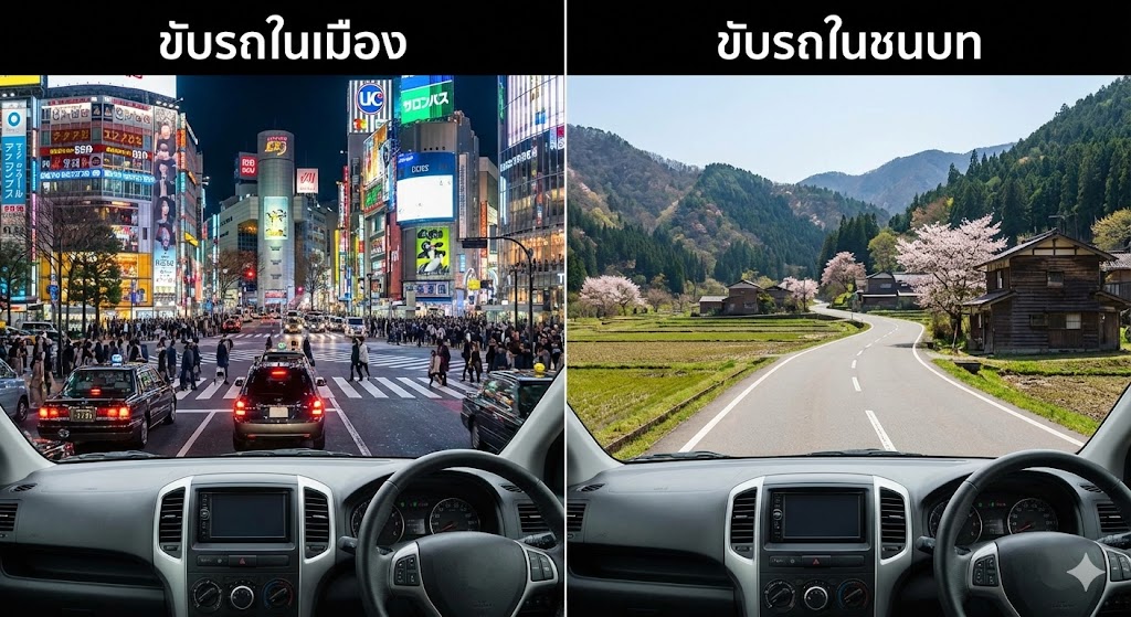 👉 รถเช่าญี่ปุ่น ขับเที่ยวชนบท vs เมืองใหญ่