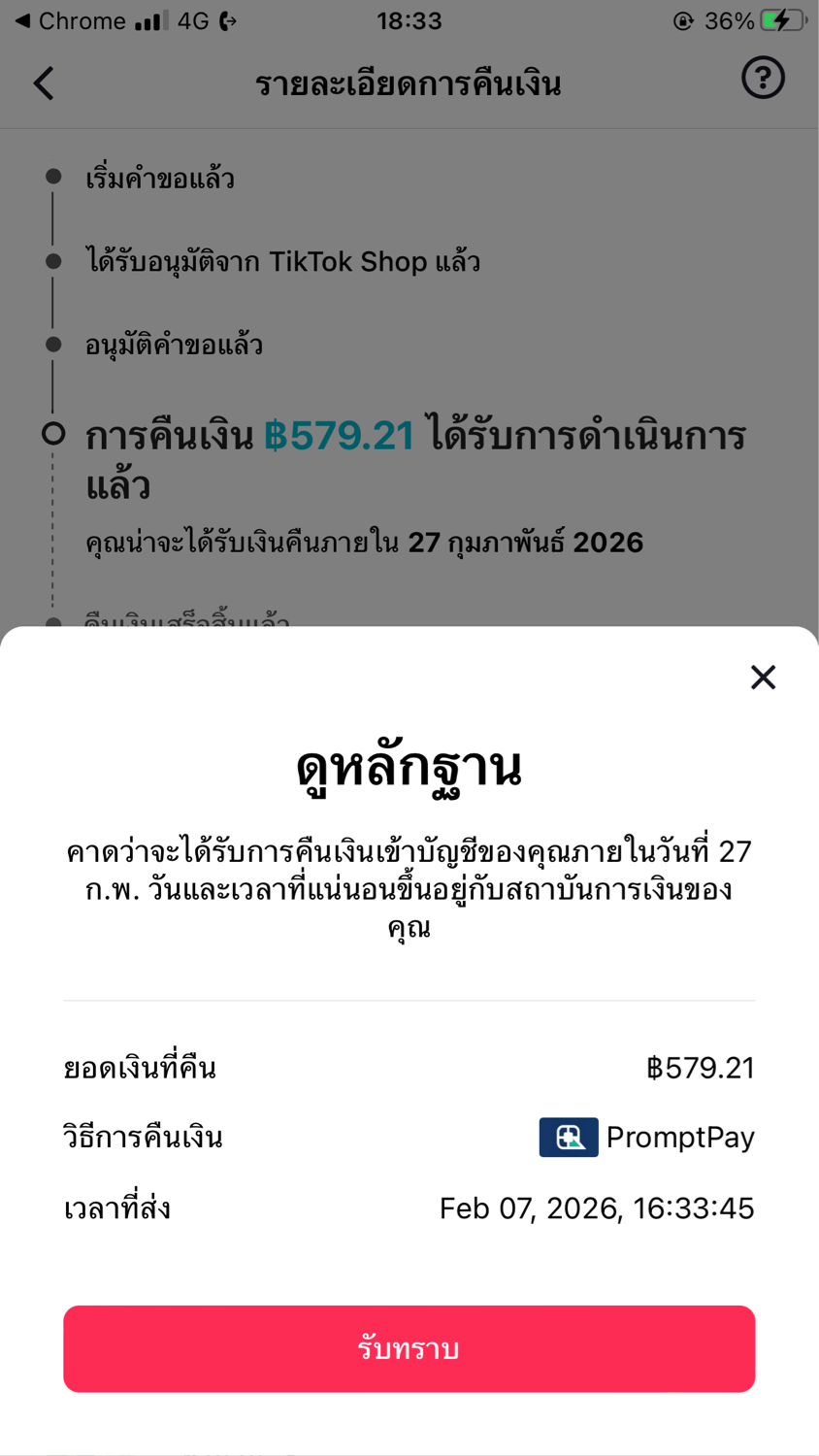 เกินไปไหมTiktok คืนเงินนานเวอร์