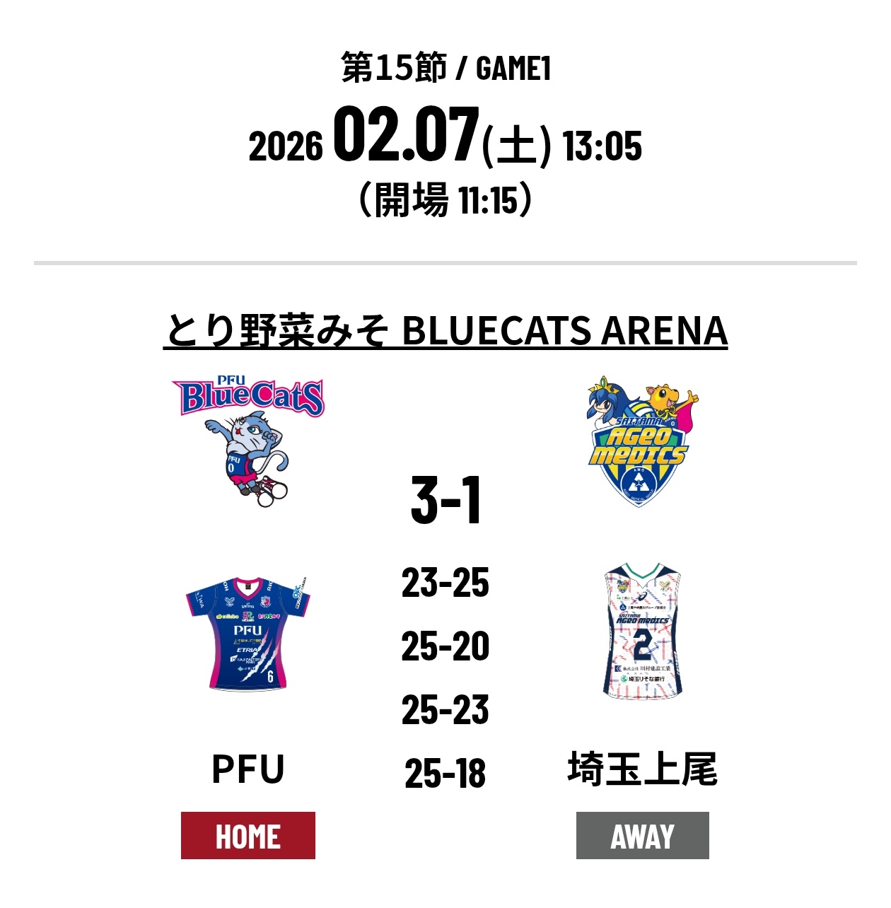 PFU Bluecats Ishikawa Kahoku 3-1 Saitama Ageo Medics