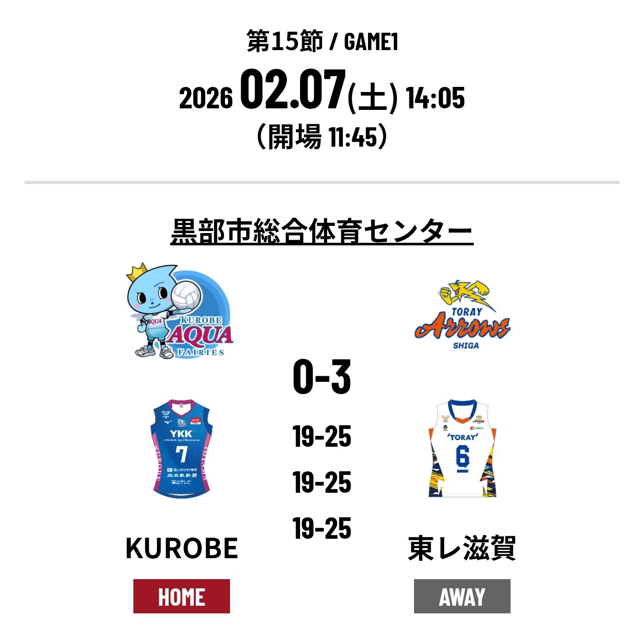 KUROBE Aqua Fairies 0-3 Toray Arrows Shiga