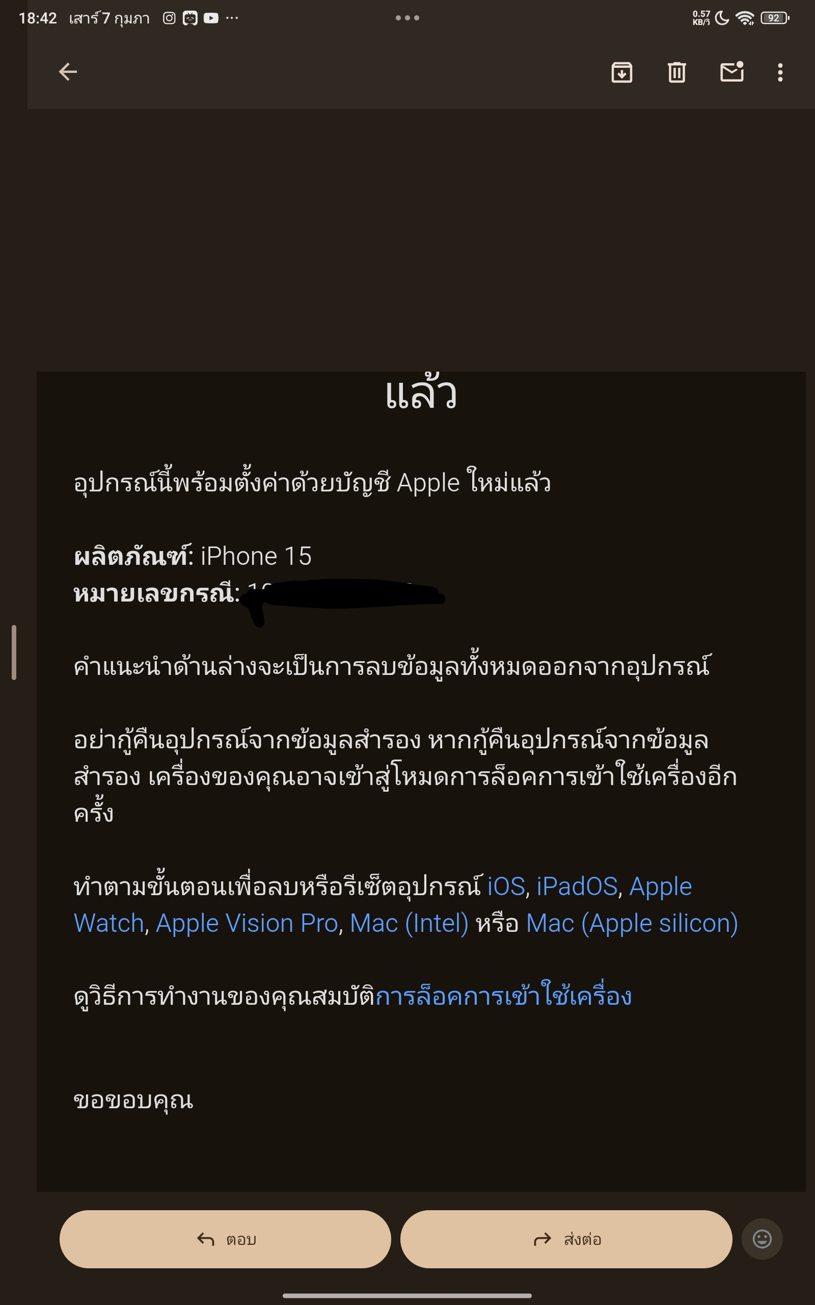 ขอสอบถามทีค่ะ พอดีไปจำนำไอคลาวด์ร้านนึงมา แต่เหมือนร้านจะโดนปิดเฟสไป แล้วค้นหาร้านยังไงก็หาไม่เจอ ใกล้ถึงเวลาจ่ายแล้วกลัวเครื่องโดนล็อคเลยยื่นเรื่องขอปลดไอคลาวด์กับทาง Apple ไป แล้วมีเมลล์เข้ามาแบบนี้