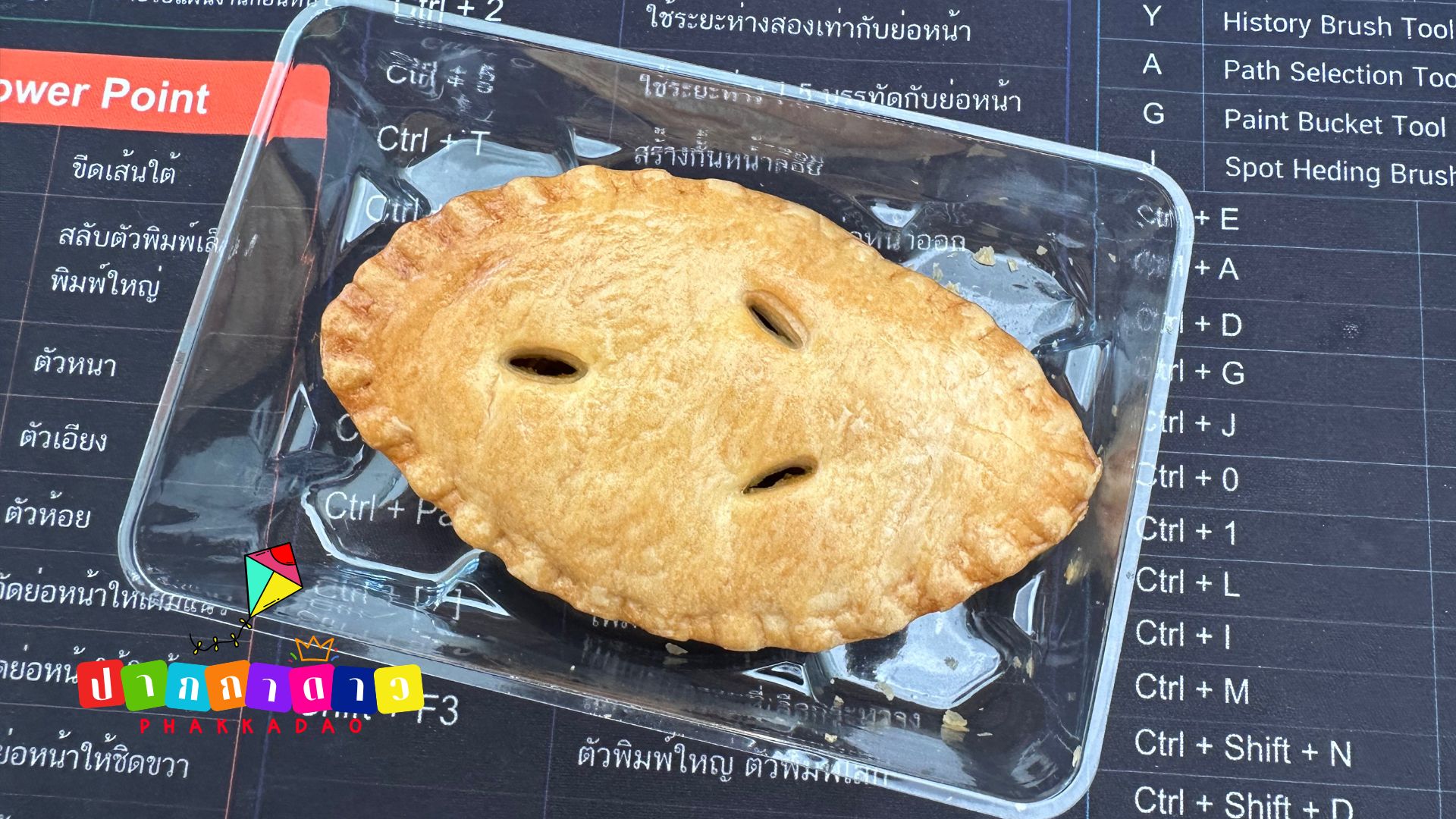 แป้งพาย: ต้องชมว่าทำชั้นแป้ง (Layers) ออกมาได้ดีเกินคาด มีความฟูและกรอบร่วน (Flaky) กัดแล้วร่วงกราวตามสไตล์พายที่ดี ไม่ใช่แป้งนิ่มๆ แฉะๆ