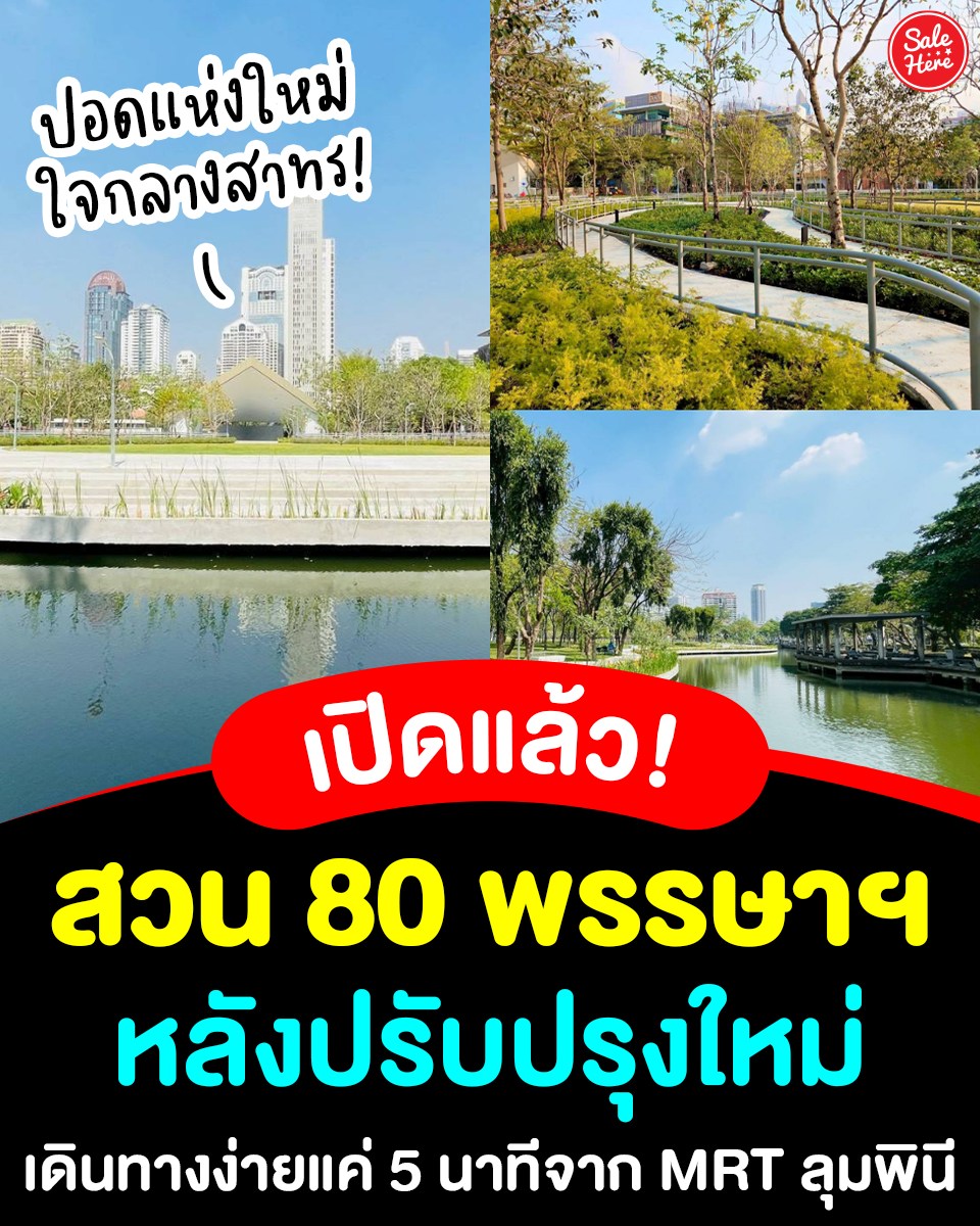 📣 ปอดแห่งใหม่ใจกลางสาทร! 🌳✨ เปิดแล้ว “สวนเฉลิมพระเกียรติ 80 พรรษาฯ” โฉมใหม่ ใกล้ MRT ลุมพินี! 😍 กลับมาเปิดให้บริการหลังรีโนเวทใหม่ร่มรื่นกว่าเดิม มีทางเดินกลางน้ำ-สวนบำบัด เดินชิลล์รับลม ฟีลธรรมชาติสุดๆ แถมมีพื้นที่กิจกรรมครบ ทั้งสายสปอร์ตและครอบครัว 🏃🏽♂️🌿 เปิดตี 5 ถึง 3 ทุ่ม ชาวสาทรเตรียมเช็กอิน!