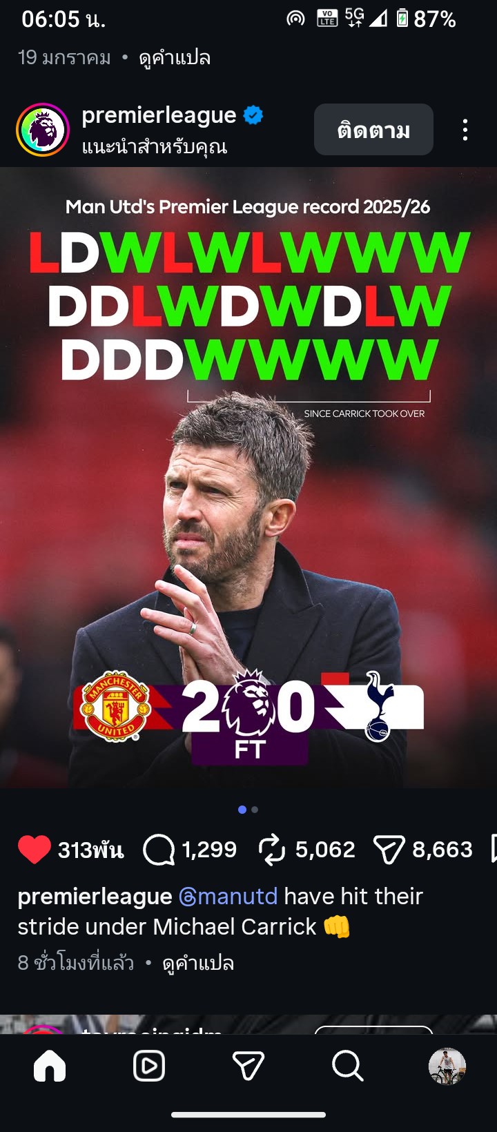 เพราะไมเคิล🔥 คาร์ริคเอฟเฟกต์ ชัดกว่านี้ไม่มีแล้ว 🔴 ไมเคิ่ล คาร์ริค เข้ามาไม่พูดเยอะ แต่ผลงานในสนามตอบทุกอย่าง แมนเชสเตอร์ ยูไนเต็ด ชนะในลีก 4 นัดติดต่อกัน เป็นครั้งแรกนับตั้งแต่ ก.พ. 2024 ผลงาน 4
