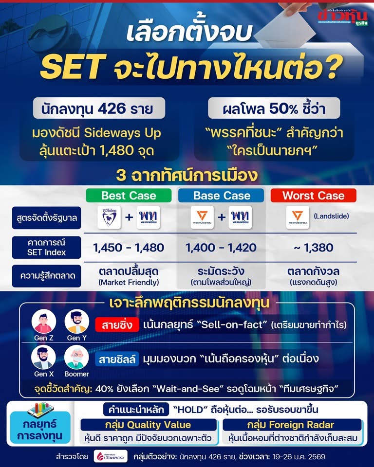 หุ้นไทยหลังเลือกตั้ง 69 รับแรงบวก เงินทุนไหลเข้า ท่องเที่ยวฟื้น