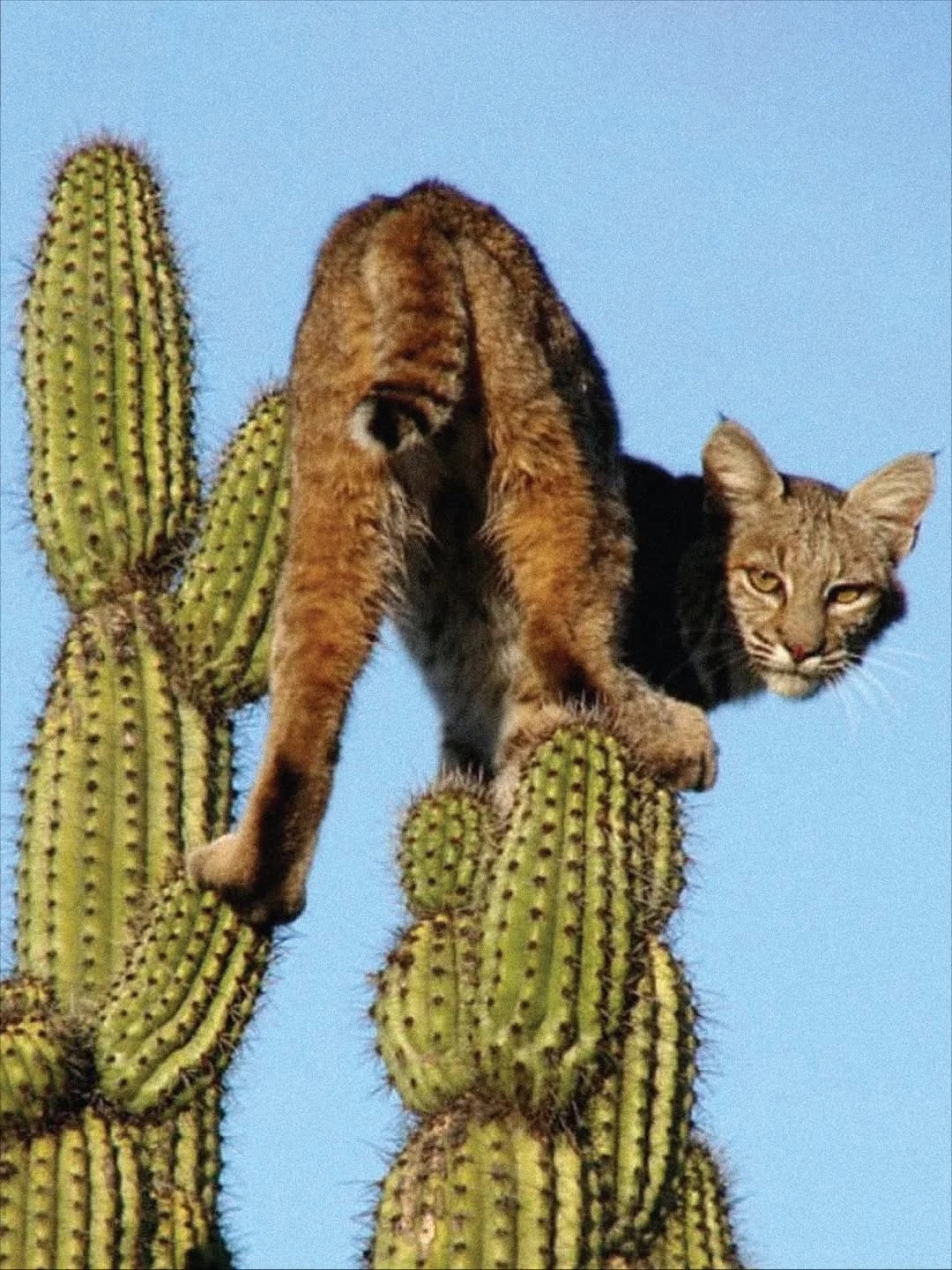 อย่างบ๊อบแคทเวลาหนีจากอันตรายมันก็จะปีนขึ้นไปต้นกระบองเพชร ไปนอนบนนั่นแหละ