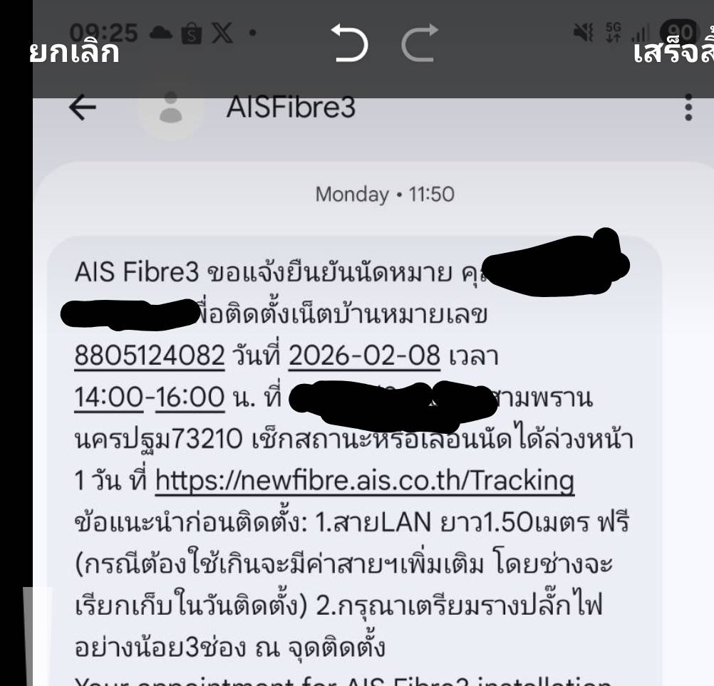 promotion ที่ใช้งานอยู่ 799 บาท/ เดือน มีปัญหาเรื่อง router ตลอด อุปกรณ์ทั้งหลุด ทั้ง reset ตลอดระยะเวลา 2 ปีที่ผ่ามา ฝ่ายเทคนิคบอกว่า router แถม ไม่ support อุปกรณ์เป็นเกิน 30 ตัวได้ ทางผมก็แจ้งไปว่างั้นเปลี่ยน pro เป็น 599 ทางผมจะซื้อ router  มาเอง และทาง AIS จะมาเปลี่ยน ONR ให้ นัดหมายกันเป็นอาทิตย์   เวลา 9:21 ทางช่าง AIS โทรมาอุปกรณ์ ONR ไม่มีให้เปลี่ยน  ไม่สามารถทำงานได้ตามที่นัดหมายได้ในวันนี้