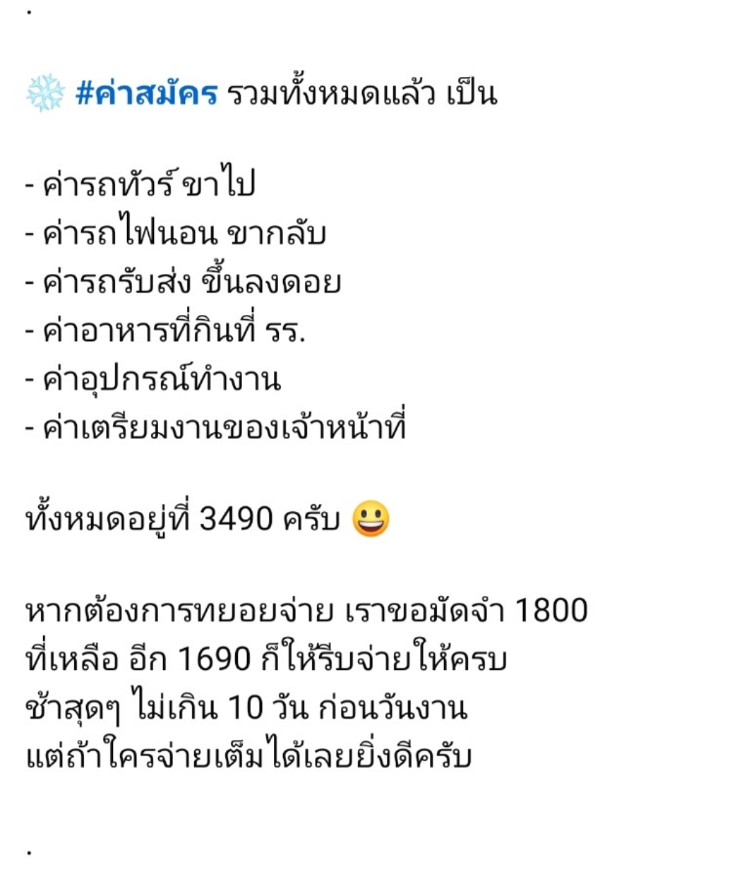 โดยมีรายละเอียดค่าใช้จ่ายดังนี้