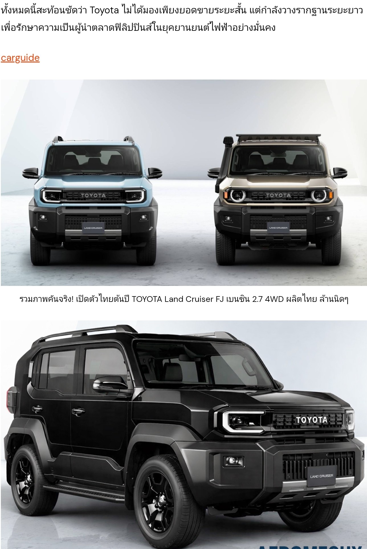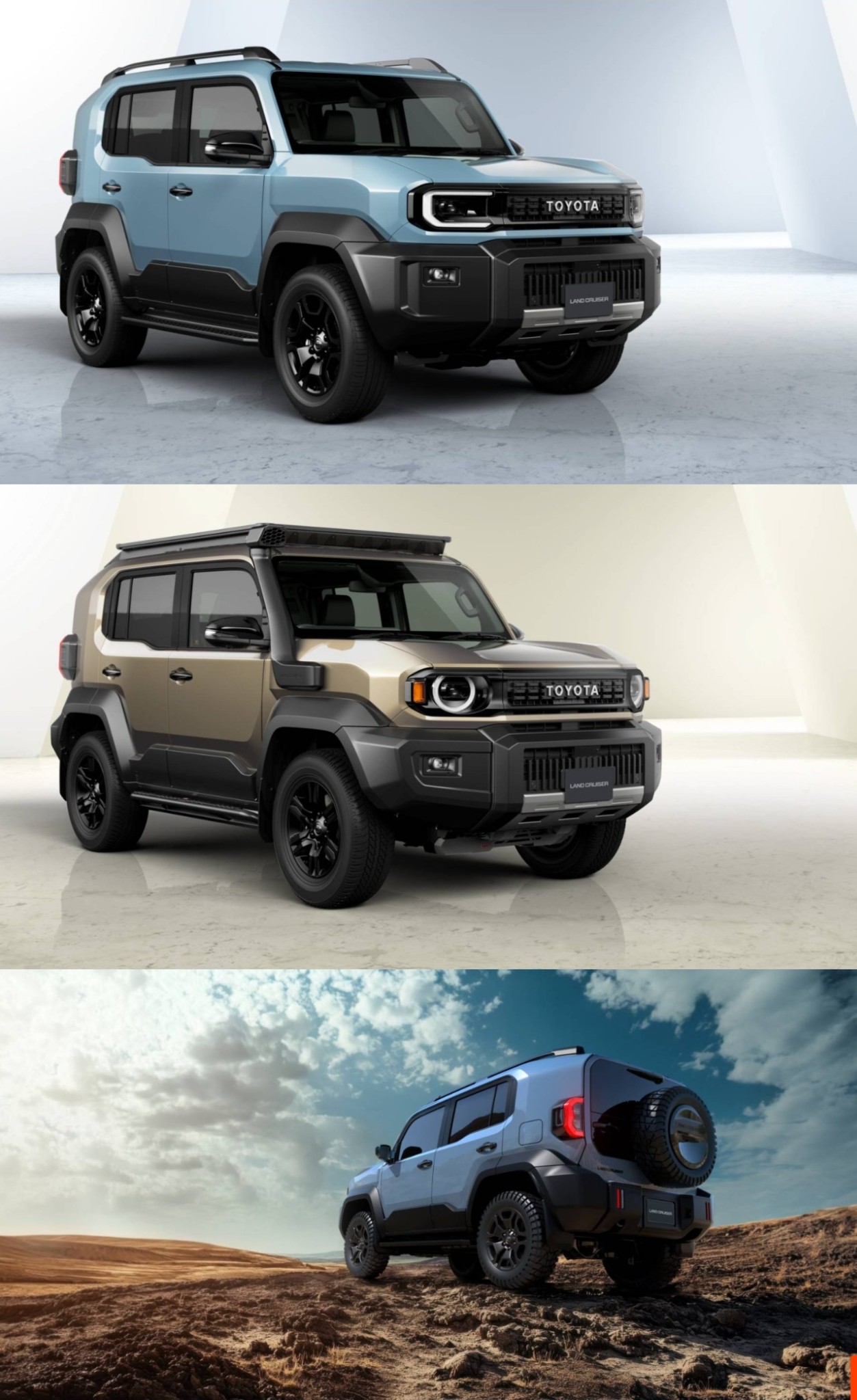 Land Cruiser Mini เปิดตัว ธันวาคม 2567 Toyota ได้จดทะเบียนเครื่องหมายการค้าสำหรับ "Land Cruiser FUN" และ "Land Cruiser FJ" ราวกลางปี 2023 ตามรายงานของ Best Car สื่อญี่ปุ่น Land