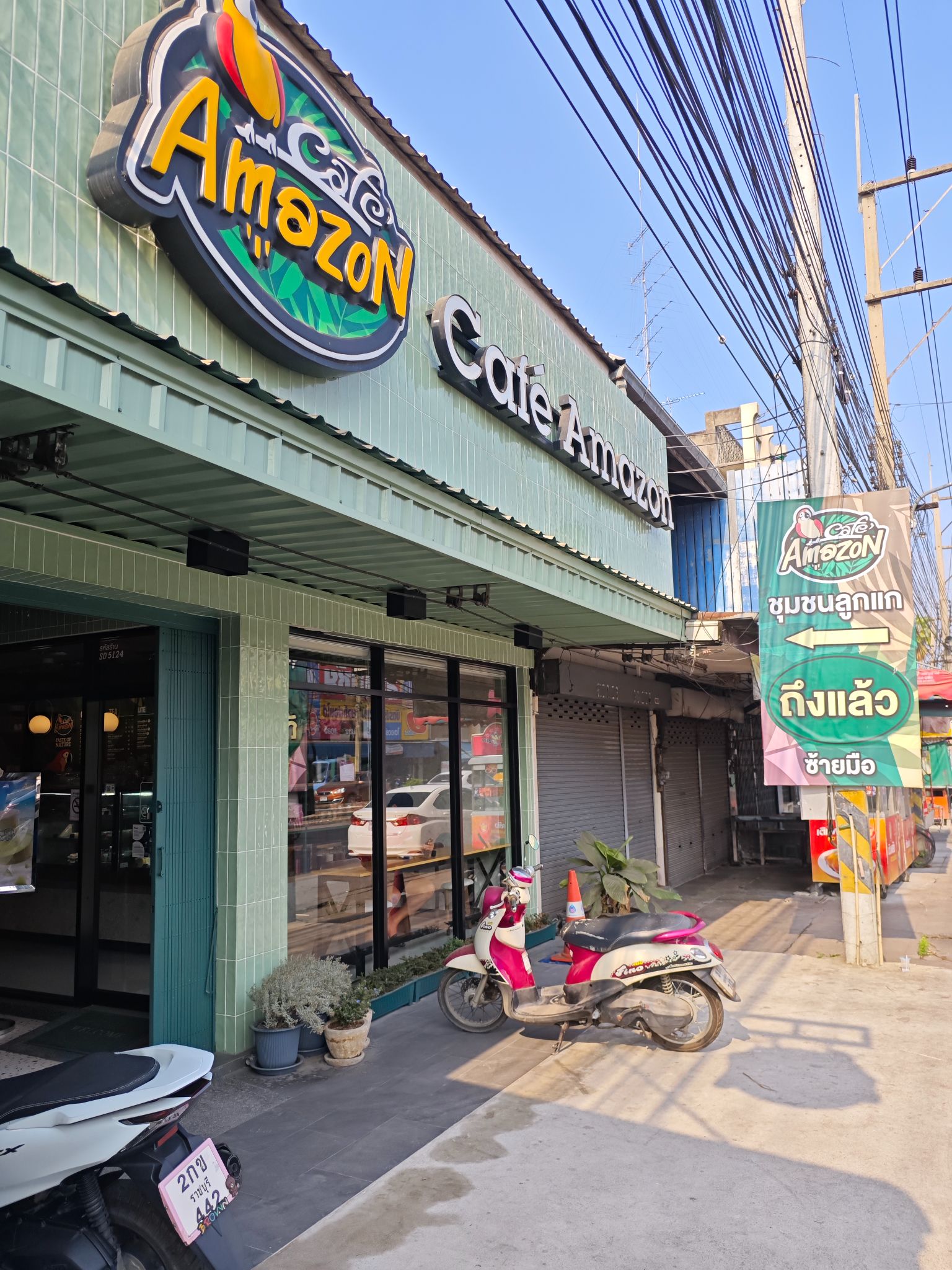 หลังจากเลือกตั้งเสร็จแล้ว ก็ไปกินข้าวเช้าของผมและกาแฟร้านอเมซอนกันครับ ตอนนี้ผมสมัครบลูการ์ดแล้วด้วยครับ สั่งลาเต้เย็นไปครับ แล้วก็ไปสั่งก๋วยเตี๋ยวร้านเจ๊เอ๋ครับ