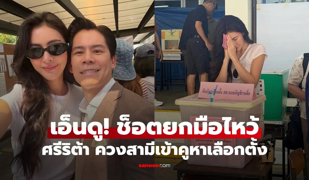 "ศรีริต้า" ควงสามีเข้าคูหา เอ็นดู! ช็อตยกมือไหว้ก่อนหย่อนบัตร