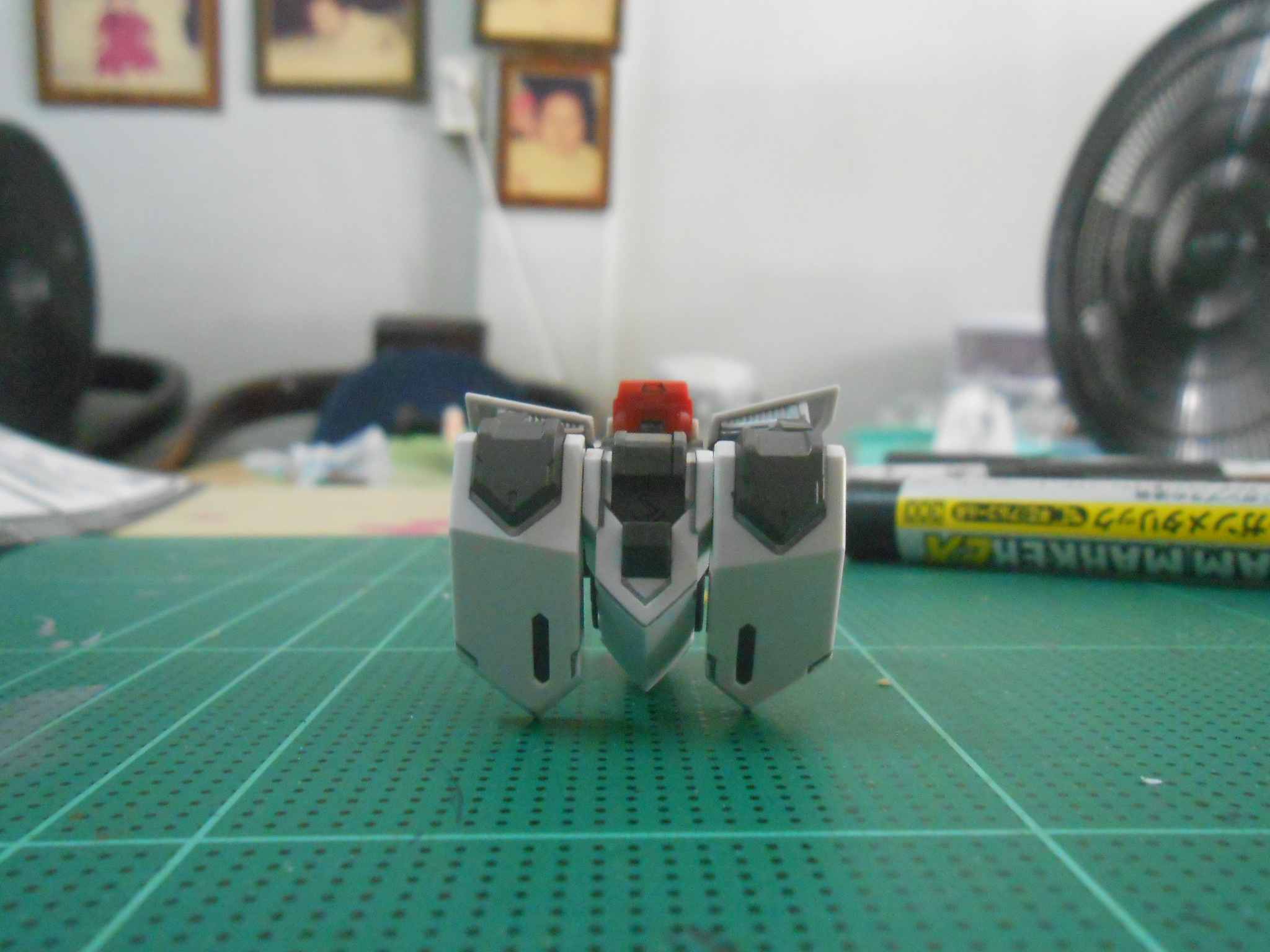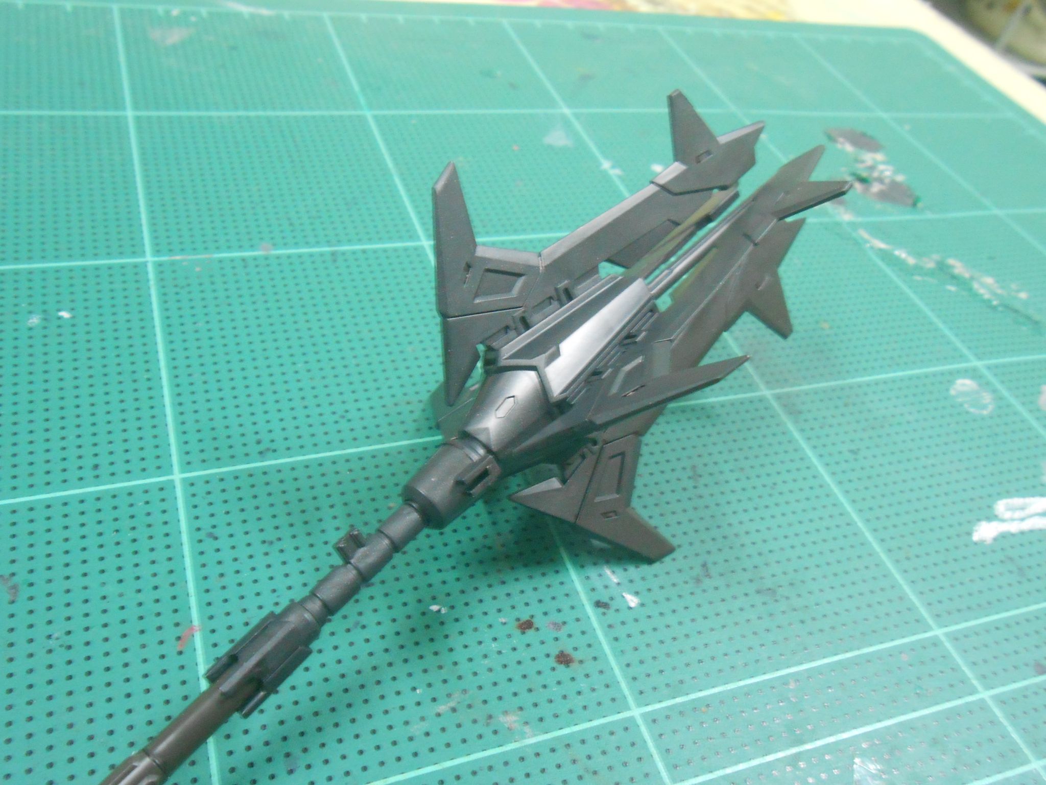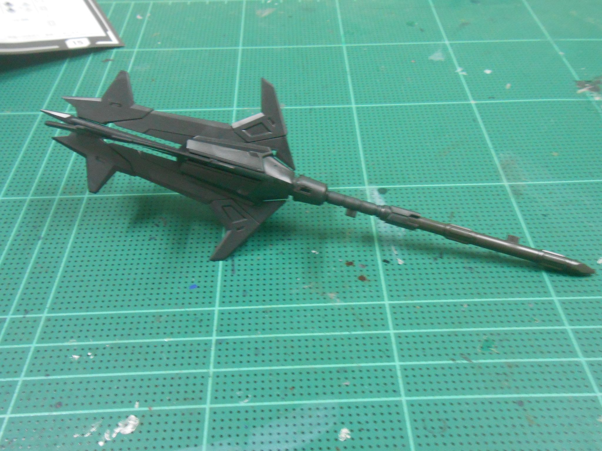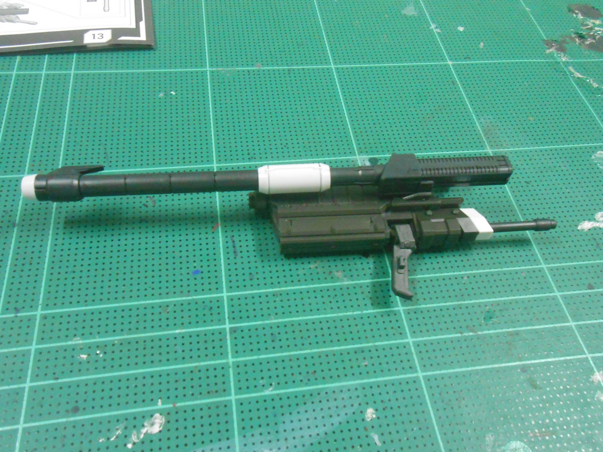 แบบประกอบเสร็จก็จะเป็นอย่างที่เห็น ดูจากเดือยแล้ว น่าจะถือได้เฉพาะมือขวาเท่านั้น ซึ่งต่างจาก MG ซึ่งถือได้ทั้ง 2 ข้าง