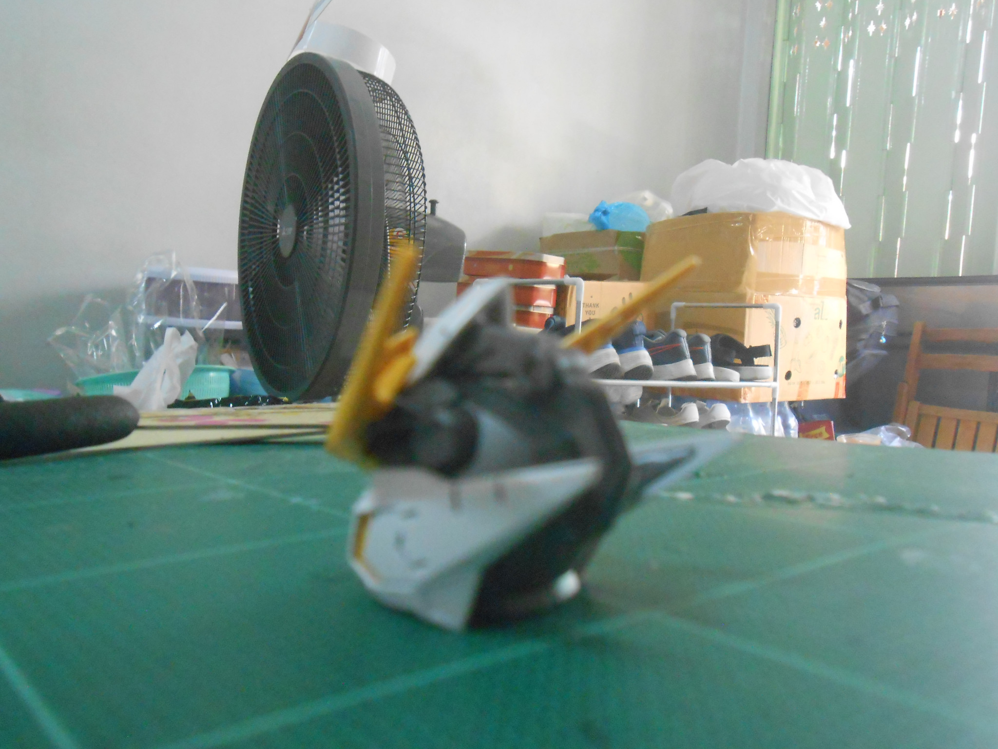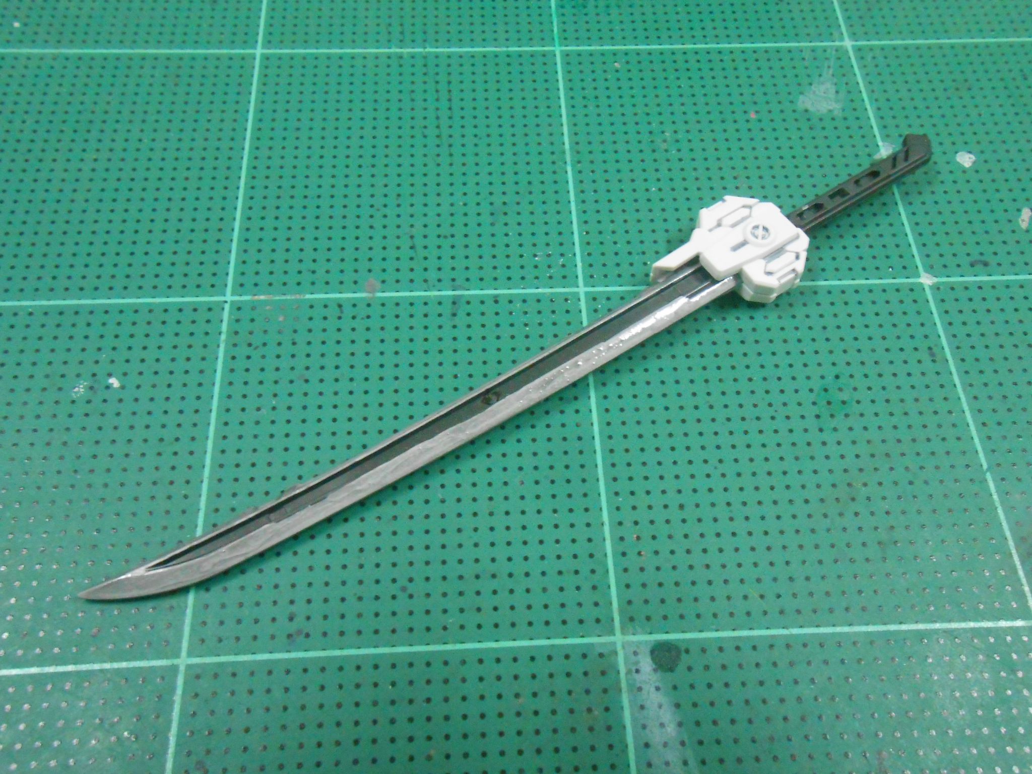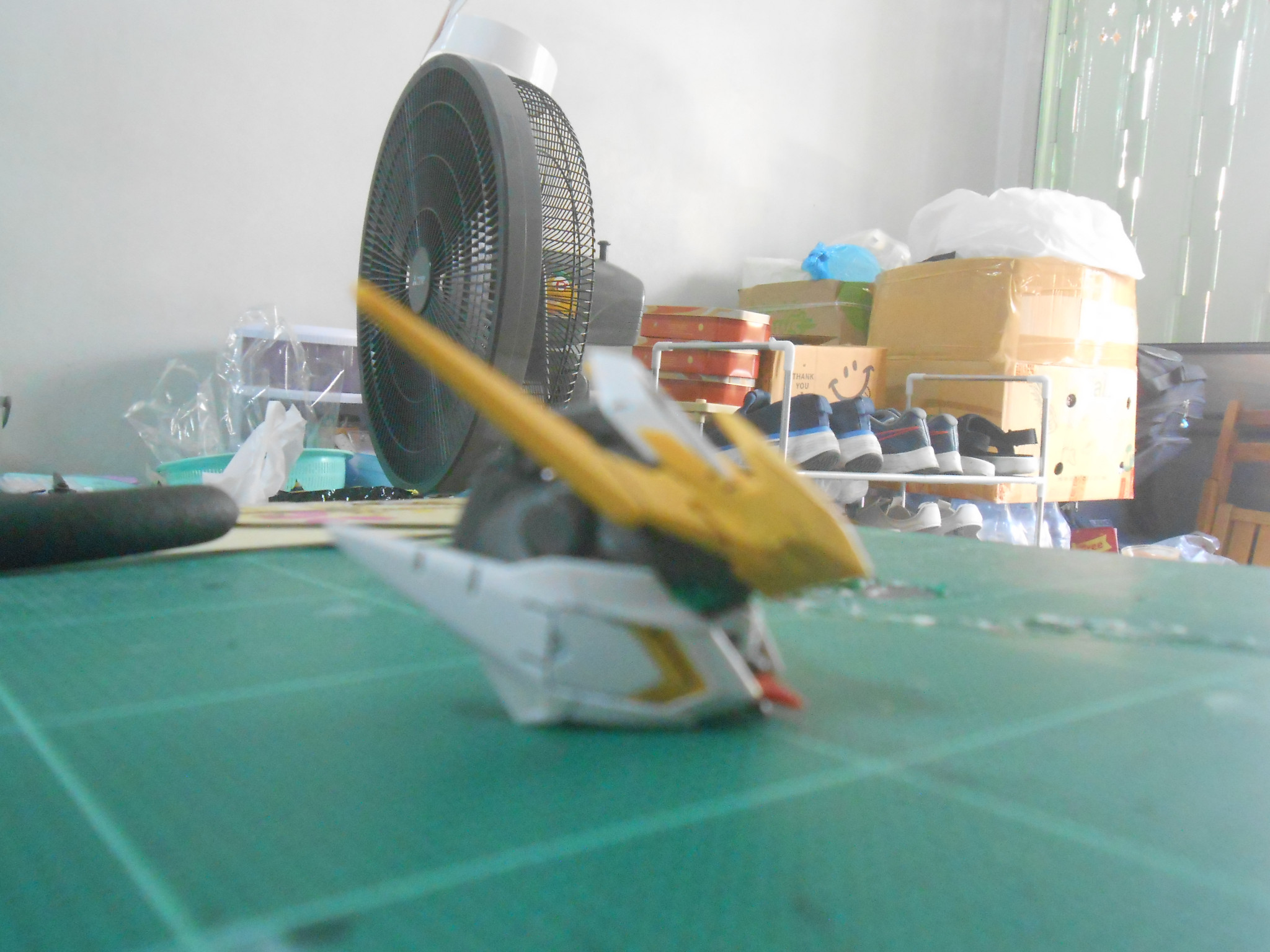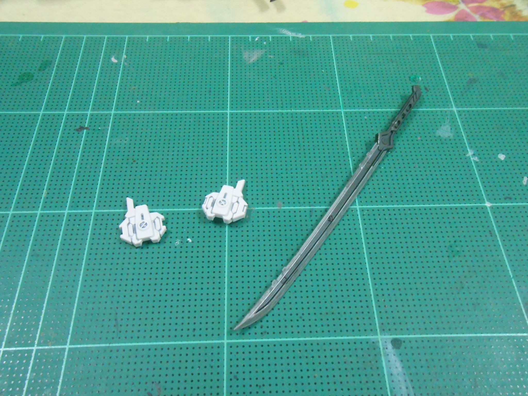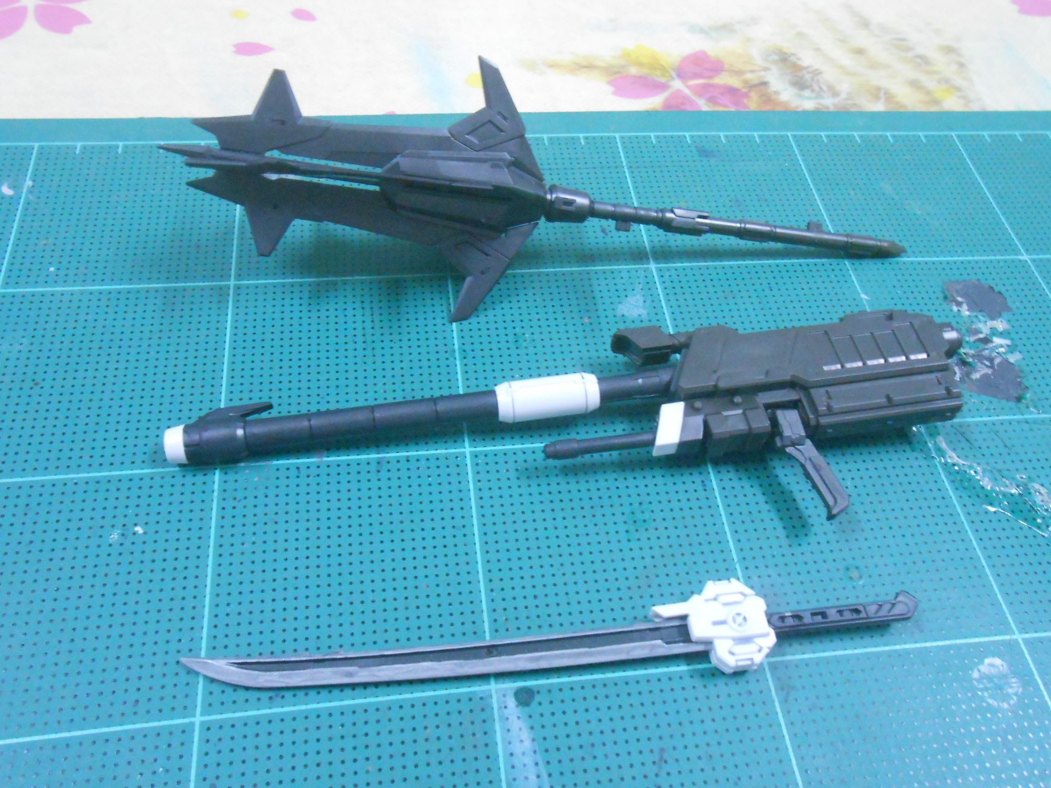 แบบประกอบเสร็จก็จะเป็นอย่างที่เห็น ดูจากเดือยแล้ว น่าจะถือได้เฉพาะมือขวาเท่านั้น ซึ่งต่างจาก MG ซึ่งถือได้ทั้ง 2 ข้าง