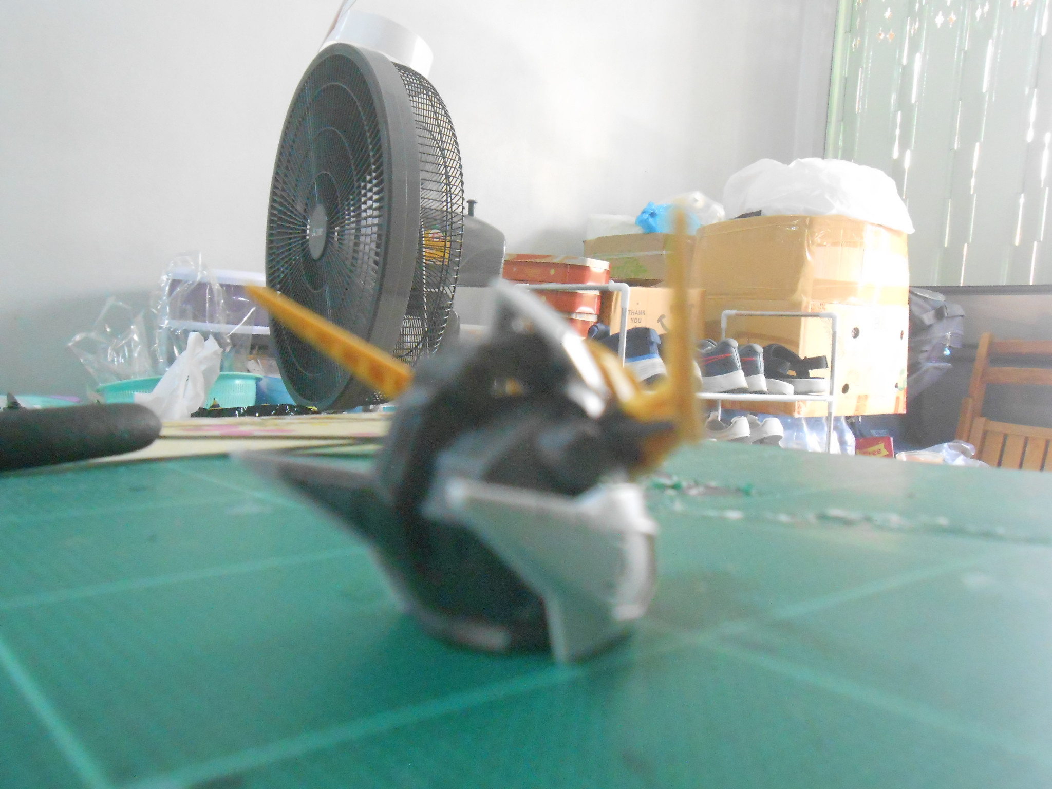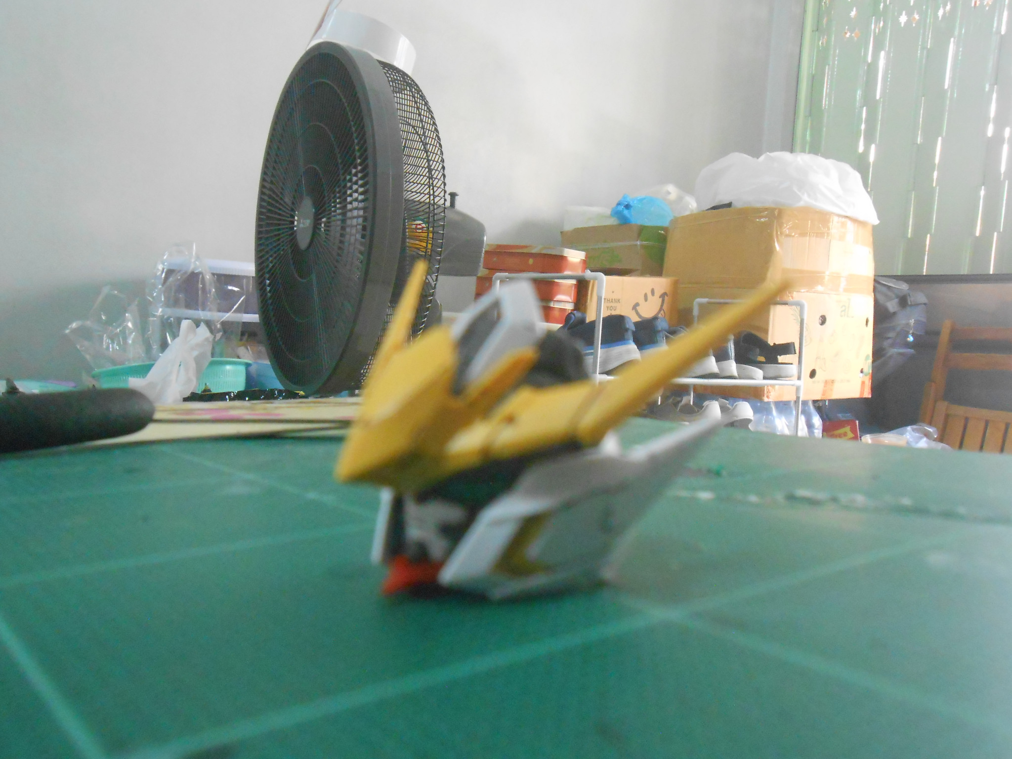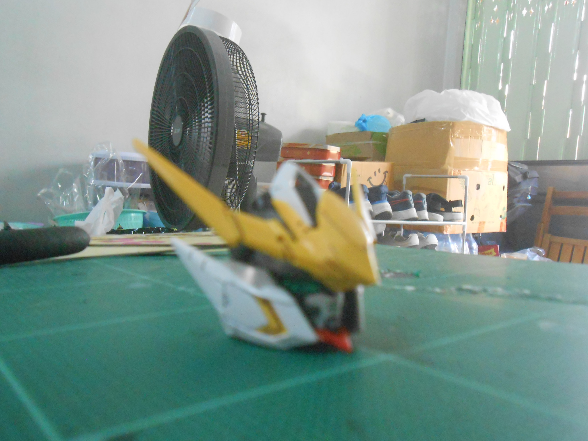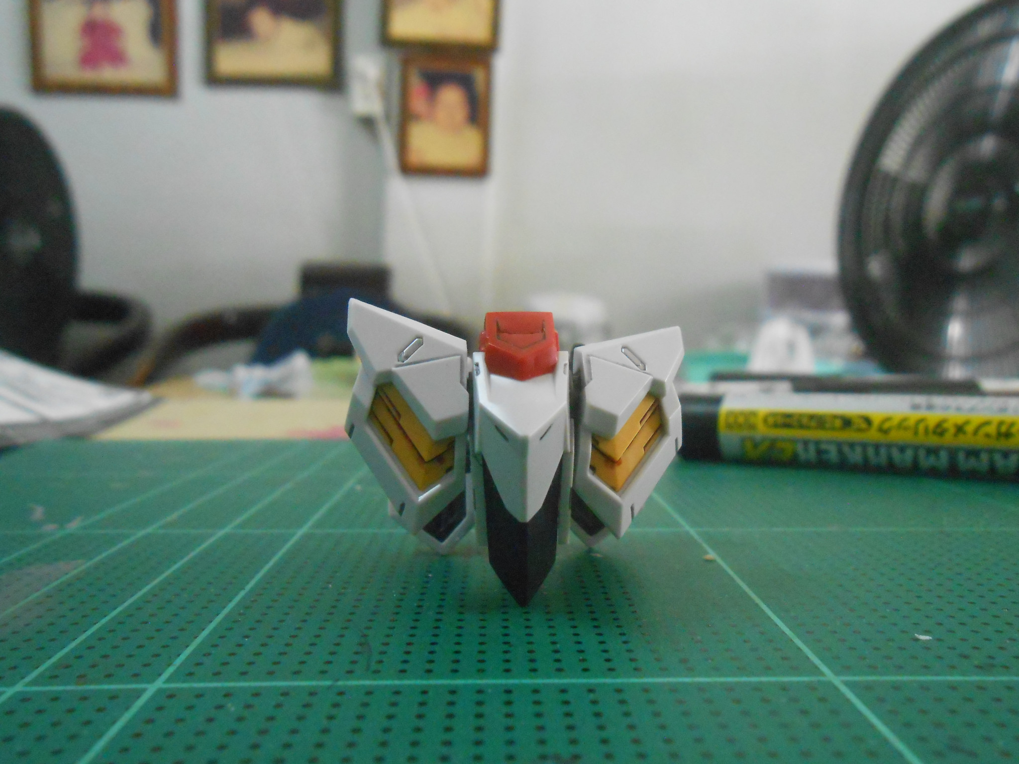 แบบประกอบเสร็จก็จะเป็นอย่างที่เห็น ดูจากเดือยแล้ว น่าจะถือได้เฉพาะมือขวาเท่านั้น ซึ่งต่างจาก MG ซึ่งถือได้ทั้ง 2 ข้าง