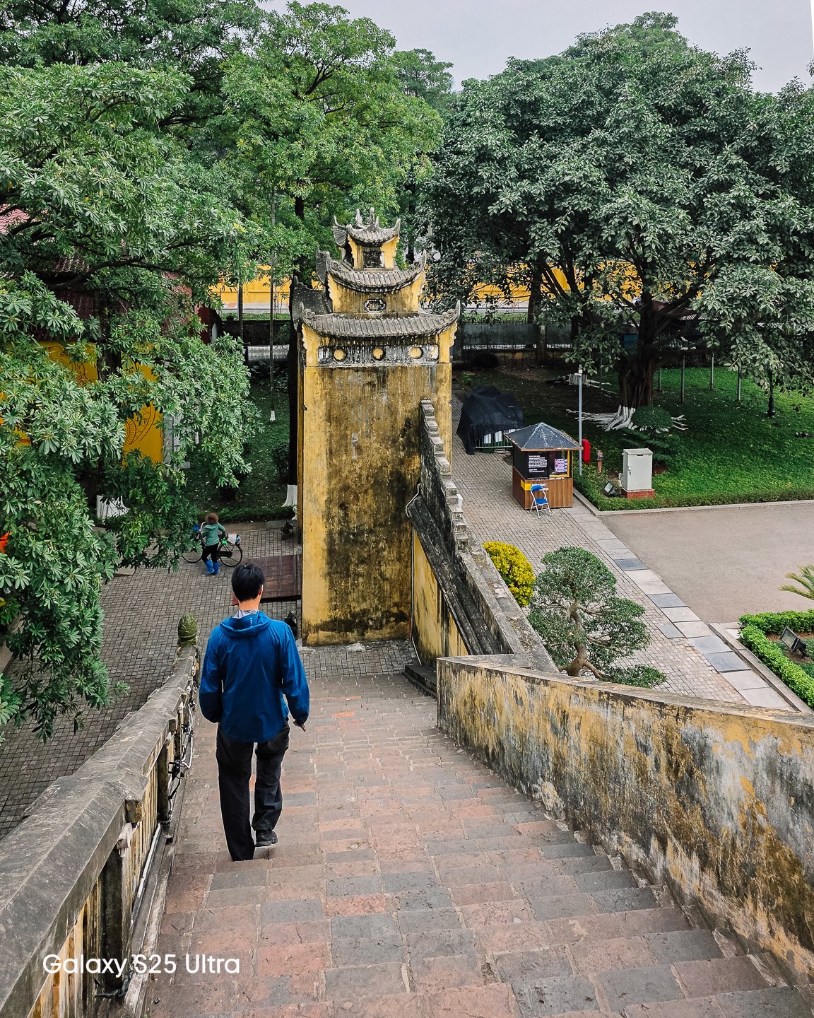 การนั่งรถบัส 2 ชั้นคือโอกาสดีในการทำ Street Photography ครับ ผมเน้นการกดชัตเตอร์รัวๆ เพื่อจับจังหวะชีวิตคนฮานอยจากมุมสูง ซึ่งระบบ Shutter Speed ของ S25 Ultra ทำงานได้ไวมาก ภาพคนขี่มอเตอร์ไซค์ที่สวนไปมาคือหยุดนิ่งสนิทไม่มีเบลอ