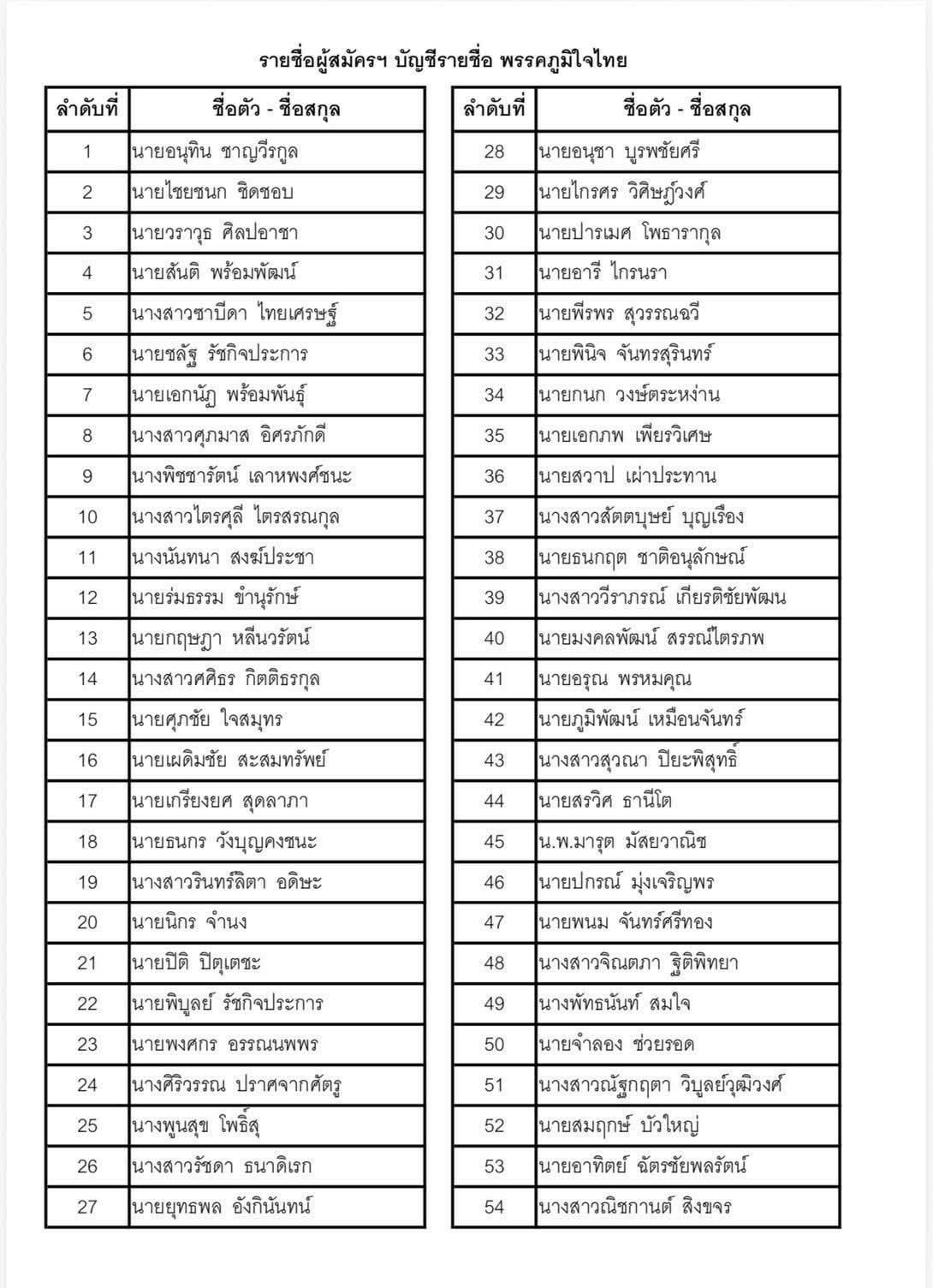 เปิดรายชื่อ 98 ผู้สมัคร สส.แบบบัญชีรายชื่อ พรรคภูมิใจไทย