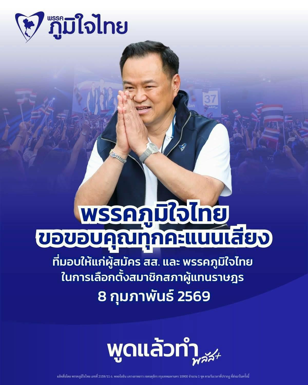 #พรรคภูมิใจไทย #พูดแล้วทำพลัส #ขอขอบคุณ #ทุกคะแนนเสียง