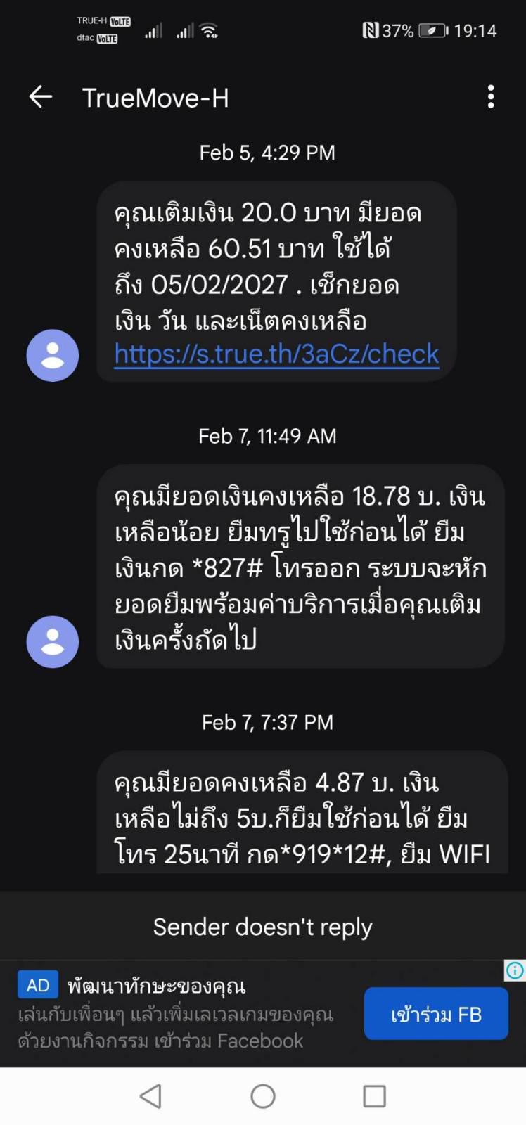 SMS แจ้งให้เตรียมเงินต่อแพ็ก แต่พอเติมแล้วไม่ต่อให้ (ซิมเทพ) กลับถูกคิดค่าเน็ต