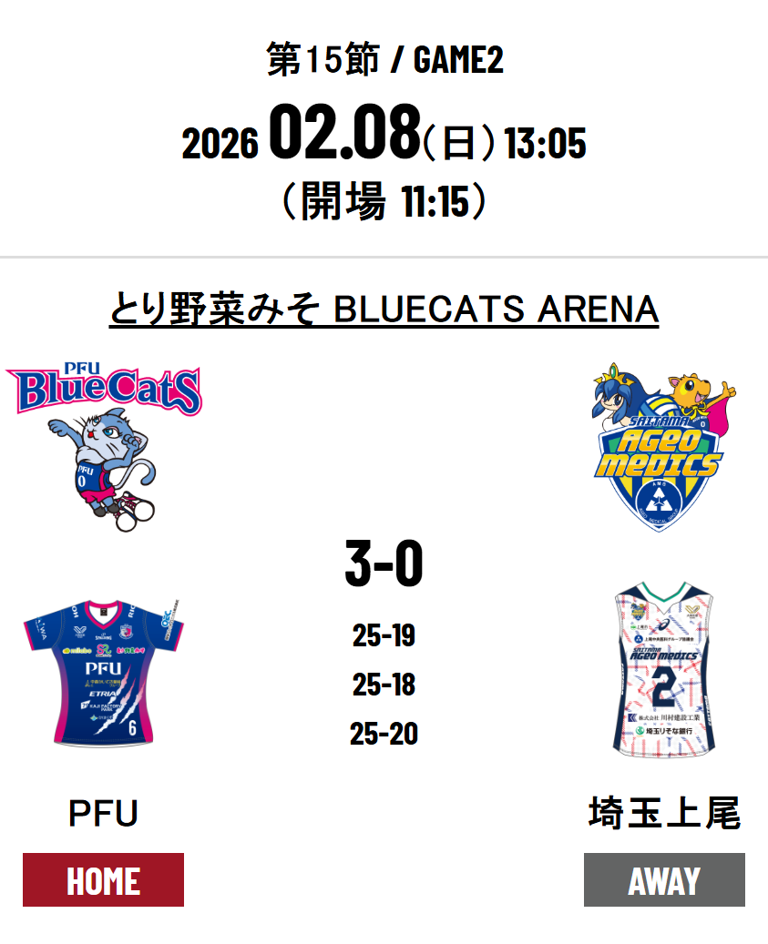PFU Bluecats Ishikawa Kahoku 3 - 0 Saitama Ageo Medics