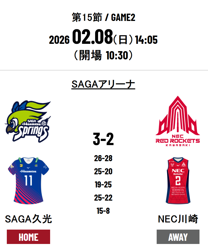 SAGA Hisamitsu Springs 3 - 2 NEC Red Rockets Kawasaki
