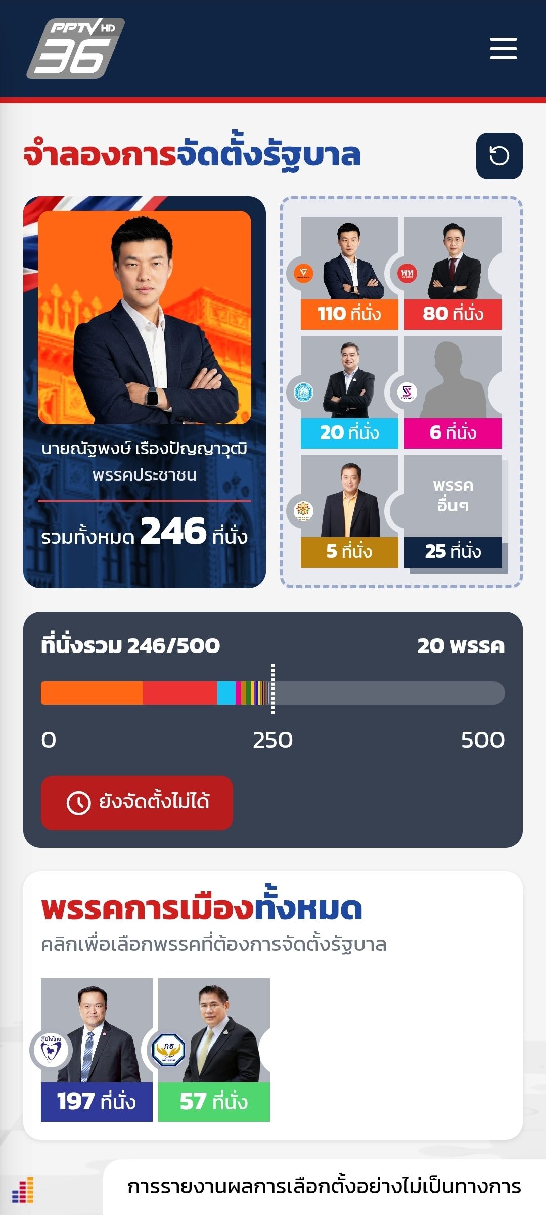 จำลองการจัดตั้งรัฐบาลหลัง นับคะแนนเลือกตั้ง 2569 (อย่างไม่เป็นทางการ)