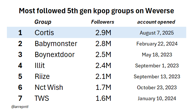 Cortis กลายเป็น kpop เจน 5 ที่มีผู้ติดตามมากที่สุดบน Weverse!