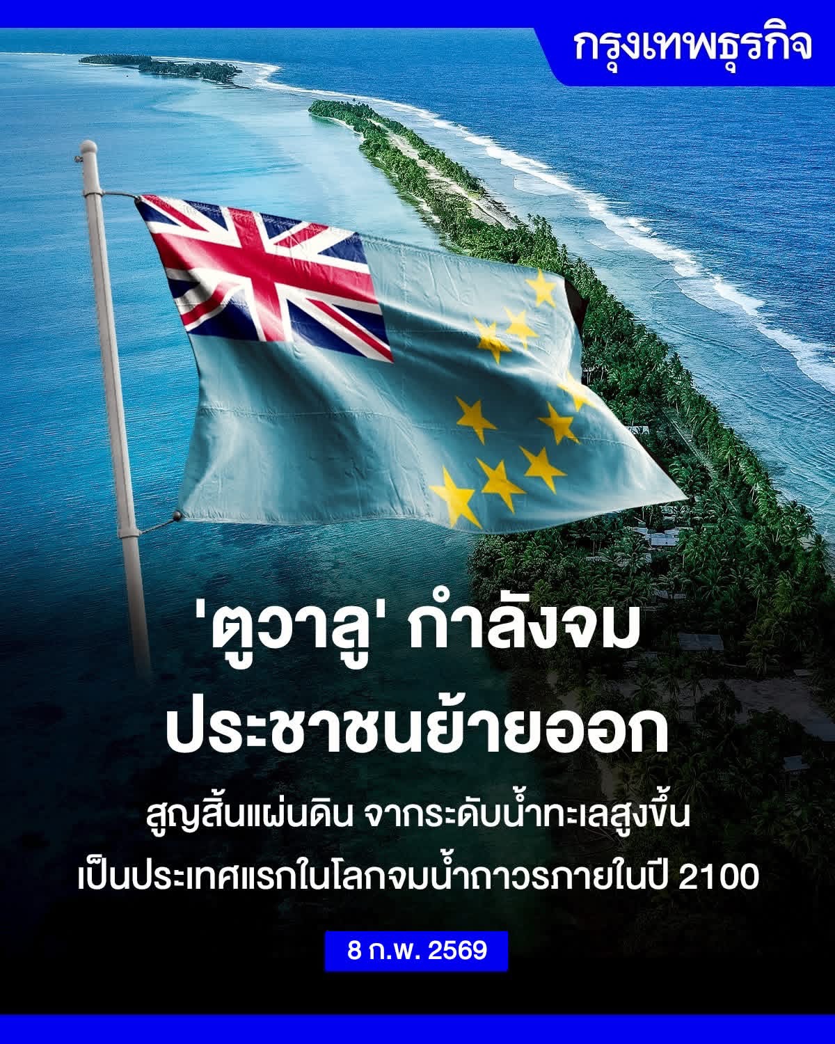 “ตูวาลู” กำลังจมน้ำ สูญสิ้นแผ่นดินจากระดับน้ำทะเลสูงขึ้น กลายเป็นประเทศแรกในโลกจมน้ำถาวรภายในปี 2100 ประชาชนเริ่มย้ายออกจากประเทศ