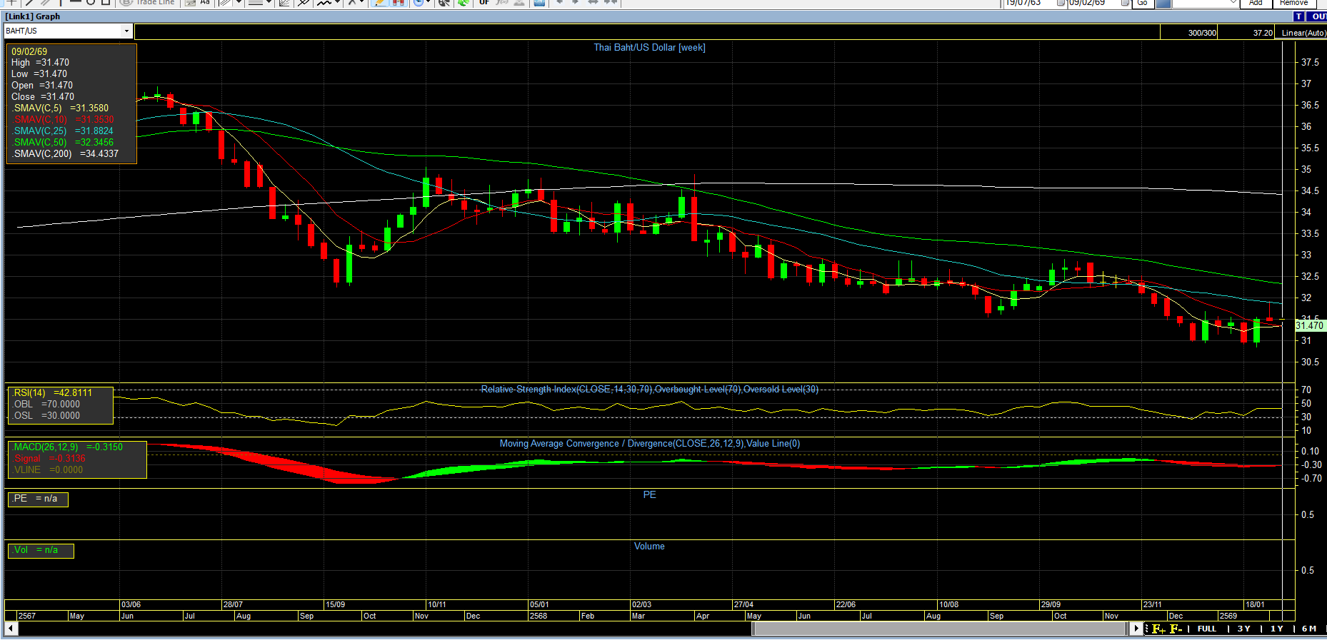 - ค่าเงินบาท ซึ่งแข็งค่ามาตลอด ถ้านับตลอดสิบปีที่ผ่านมา แสดงอาการหยุดแข็งต่อ กราฟ ที่เห็น ดีมาก แม้ช่วงสั้นๆ อาจจะเห็นแกว่งแข็งอีกครั้ง แต่ภาพใหญ่เตรียมพร้อมที่จะอ่อนค่าตามความเหมาะสม ซึ่งจะส่งผลดีต่อภาคเกษตรกรรม การส่งออก ท่องเที่ยวจะดีขึ้นเป็นลำดับตามทิศทางค่าเงินที่อ่อน