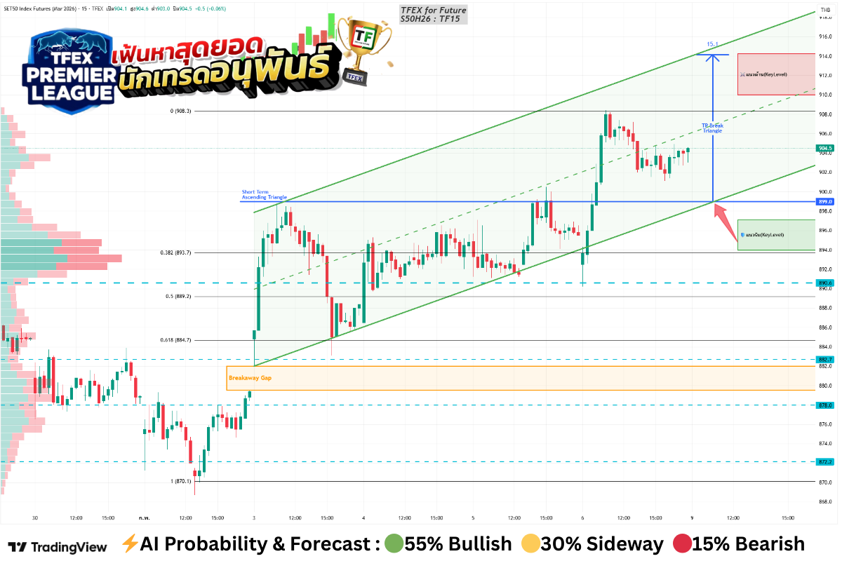 ⚔️ แนวต้าน (Resistance): 909-914 (จุดร่วม 3 Indicators)