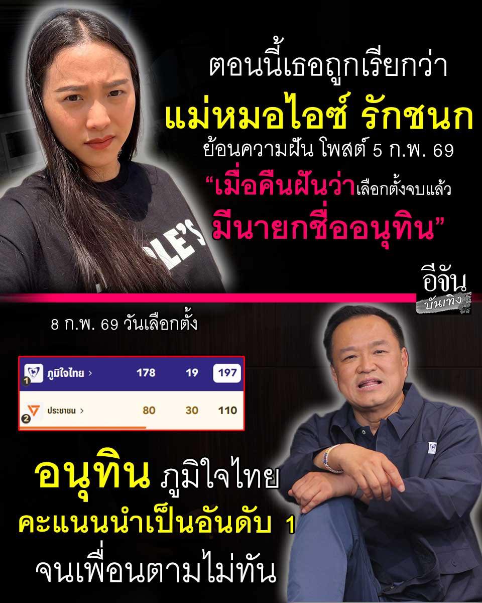เช้าที่ไม่สดใส! ‘ไอซ์ รักชนก’ โพสต์ความฝันเลือกตั้งจบมีนายกฯ ชื่อ ‘อนุทิน’