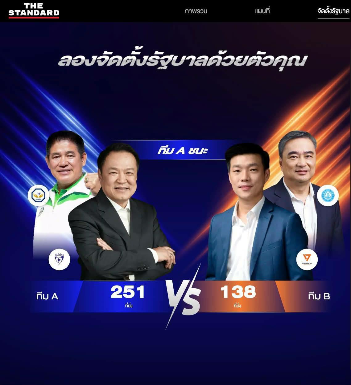 TheStandardNews ชวนลองจัดตั้งรัฐบาลด้วยตัวคุณเอง (ฝ่านค้านที่แข็งแกร่งมาก)