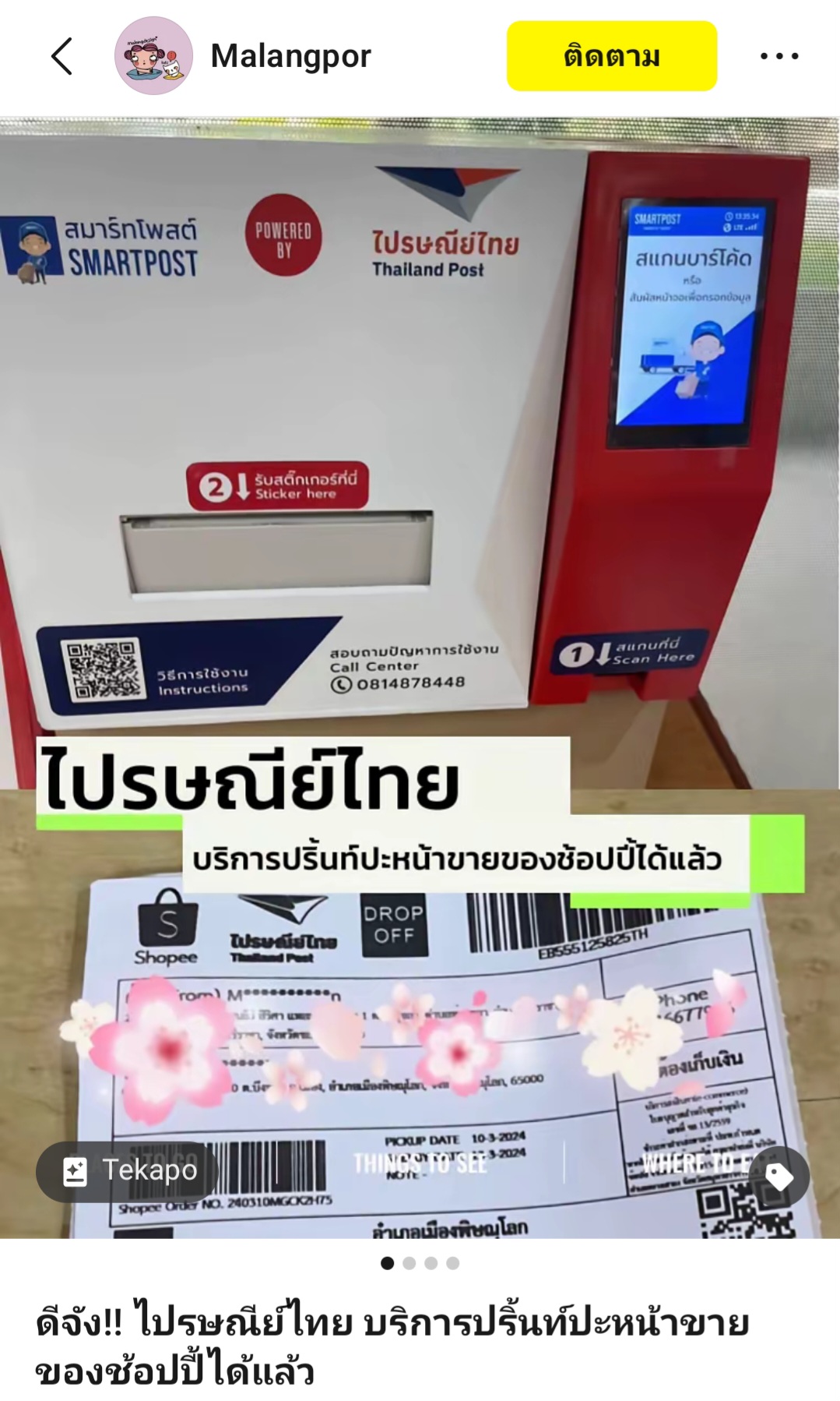 สวัสดีค่ะ ขออนุญาตสอบถาม ทางไปรษณีย์ไทยมีบริการปริ้นท์ใบจ่าหน้าให้ไหมคะ เราเจอแบบนี้มาตามรูป ไม่แน่ใจว่ามีบริการทุกสาขาไหม แล้วมีสาขาไหนบ้างคะ