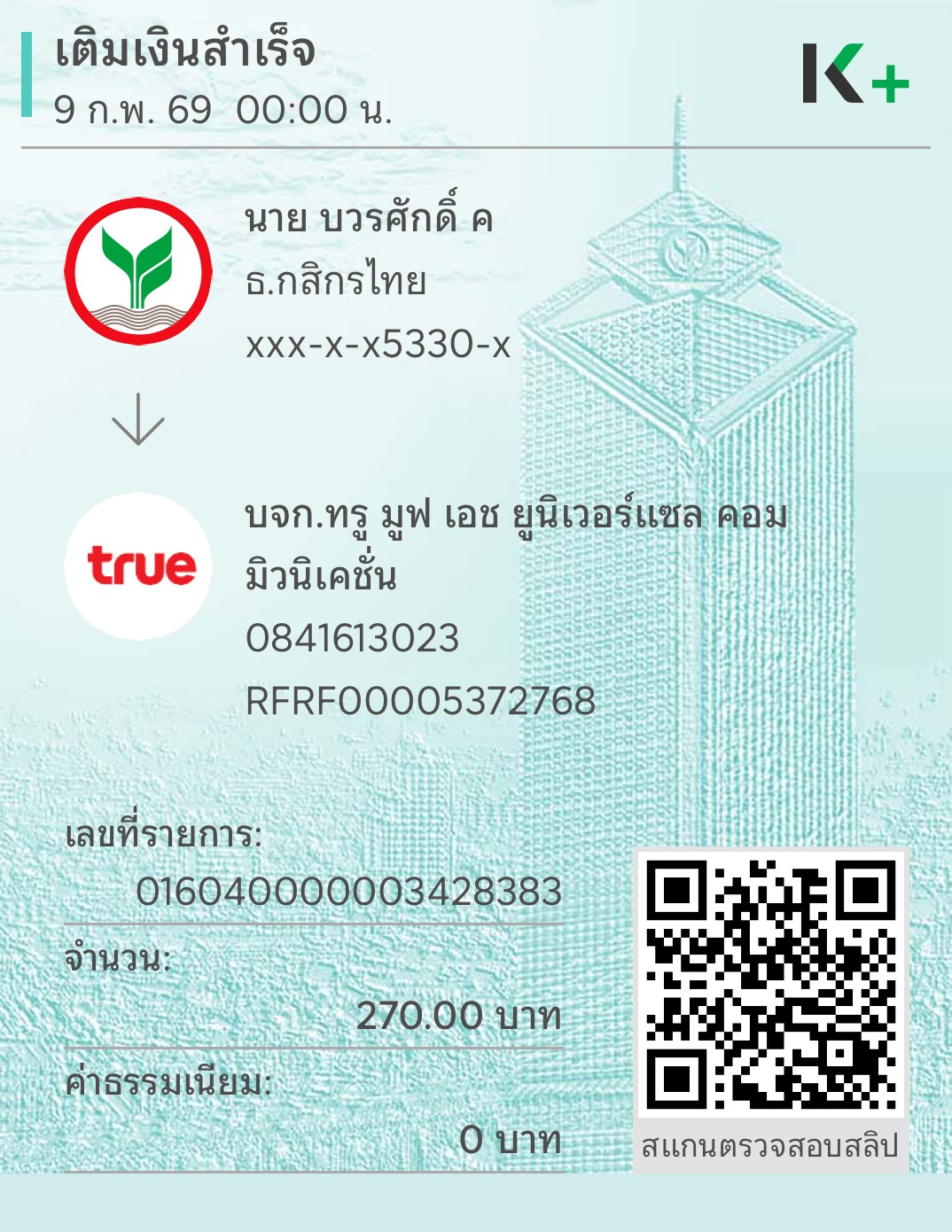 เติมเงินผ่านแอปธนาคารไม่เข้าทำไงค่ะเเต่เงินในธนาคารหักไปแล้วของทรูมูฟค่ะ