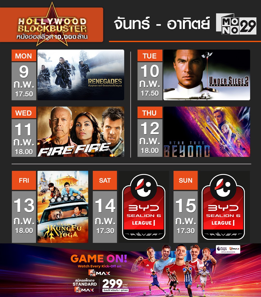 Hollywood Blockbuster หนังฮอลลีวูด 10,000 ล้าน วันที่ 9 - 15 กุมภาพันธ์ เวลา 18.00 น. ทางช่อง MONO29