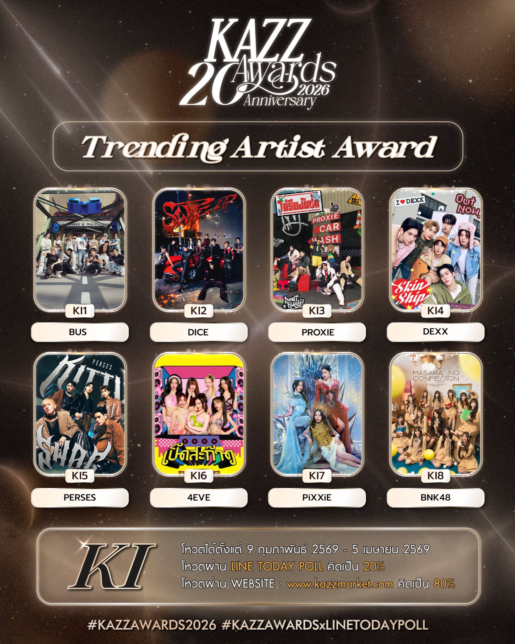 โหวตอีกแล้ว รางวัลศิลปินกลุ่มมาแรง Trending Artist Award ของ KAZZAWARDS 2026 ✨